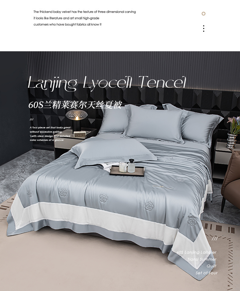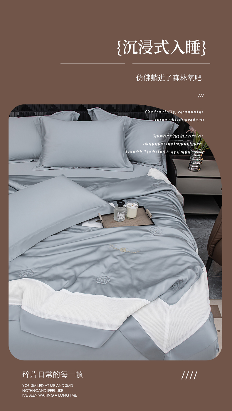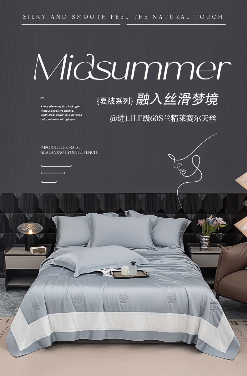 • 91家纺网 家纺一手货源 找家纺 好阁家纺 2025新款60S夏被 雾蓝