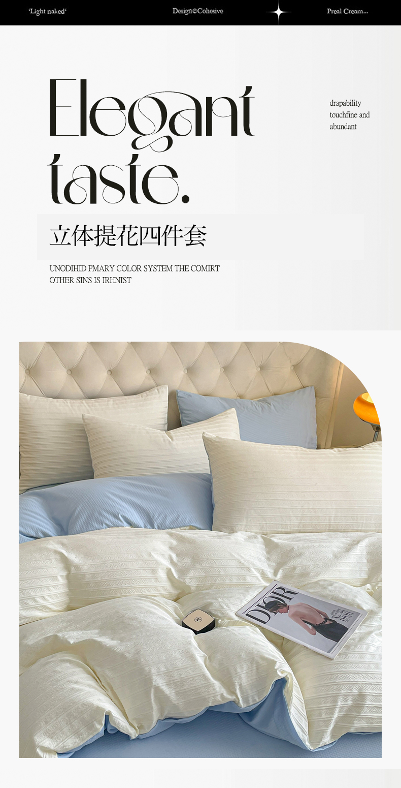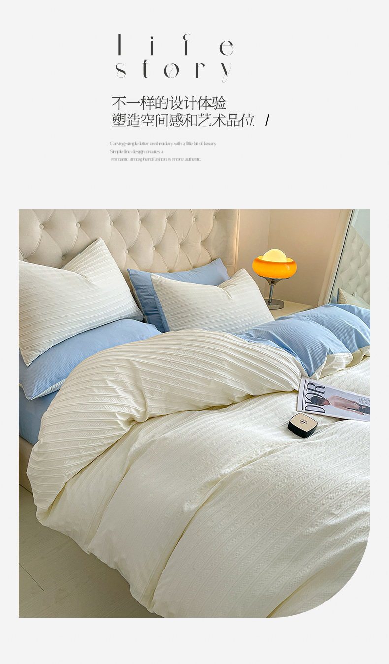当前位置: 91家纺网 > 商品网购 > 床品套件 > 四件套 > 悦织湾家纺 2025新款色织提花立体四件套 提花立体条纹奶白浅兰
