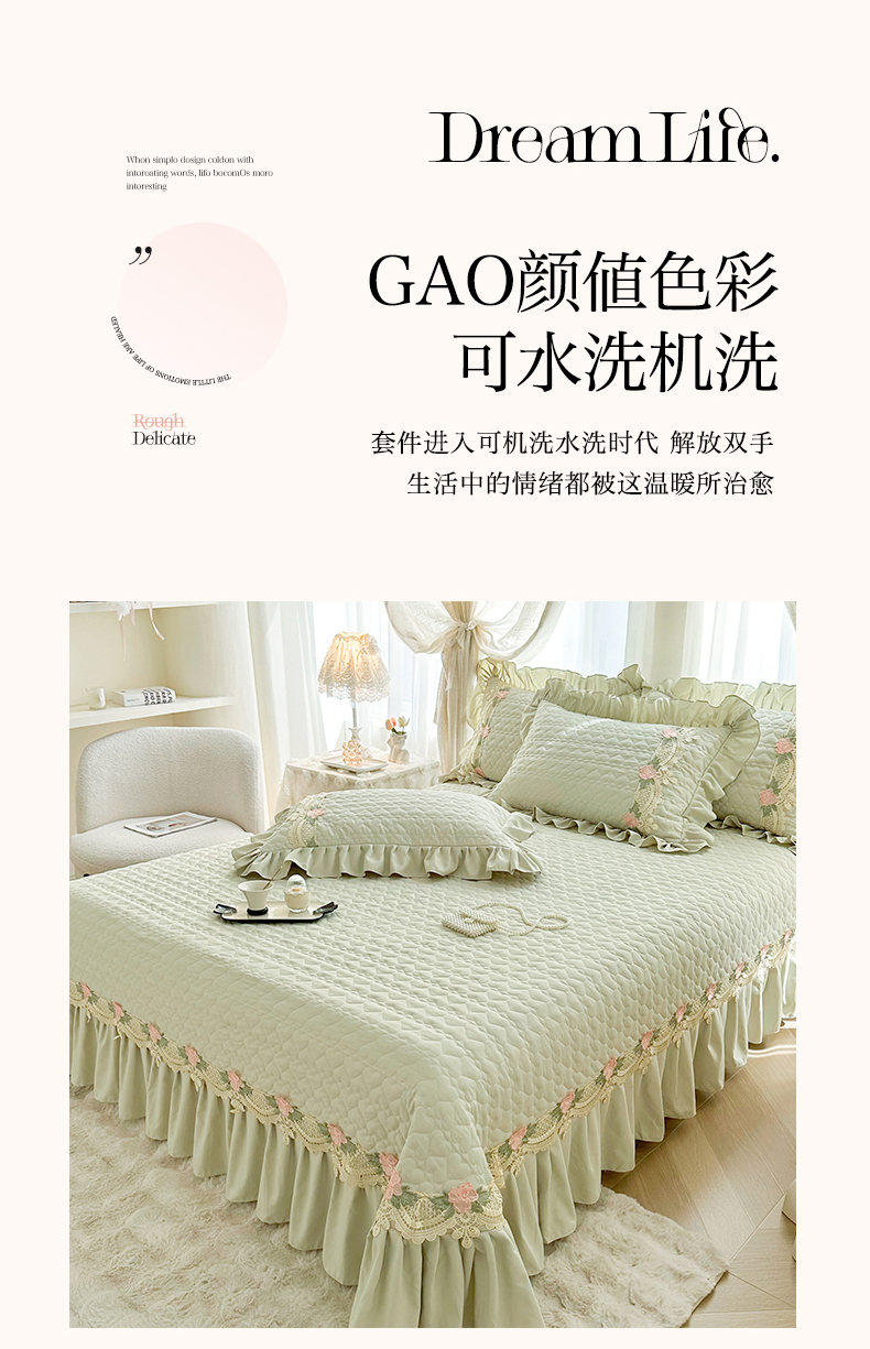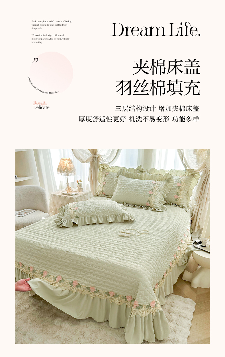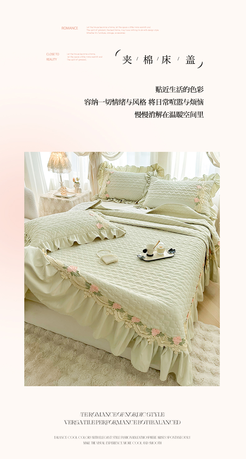 当前位置: 91家纺网 > 商品网购 > 床品套件 > 三件套 > 罗艺轩 2025新款A类珍珠棉全夹棉床盖三件套-玫瑰之恋 玫瑰之恋-碧草绿
