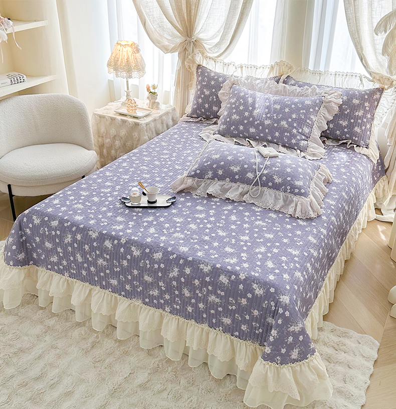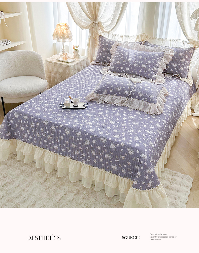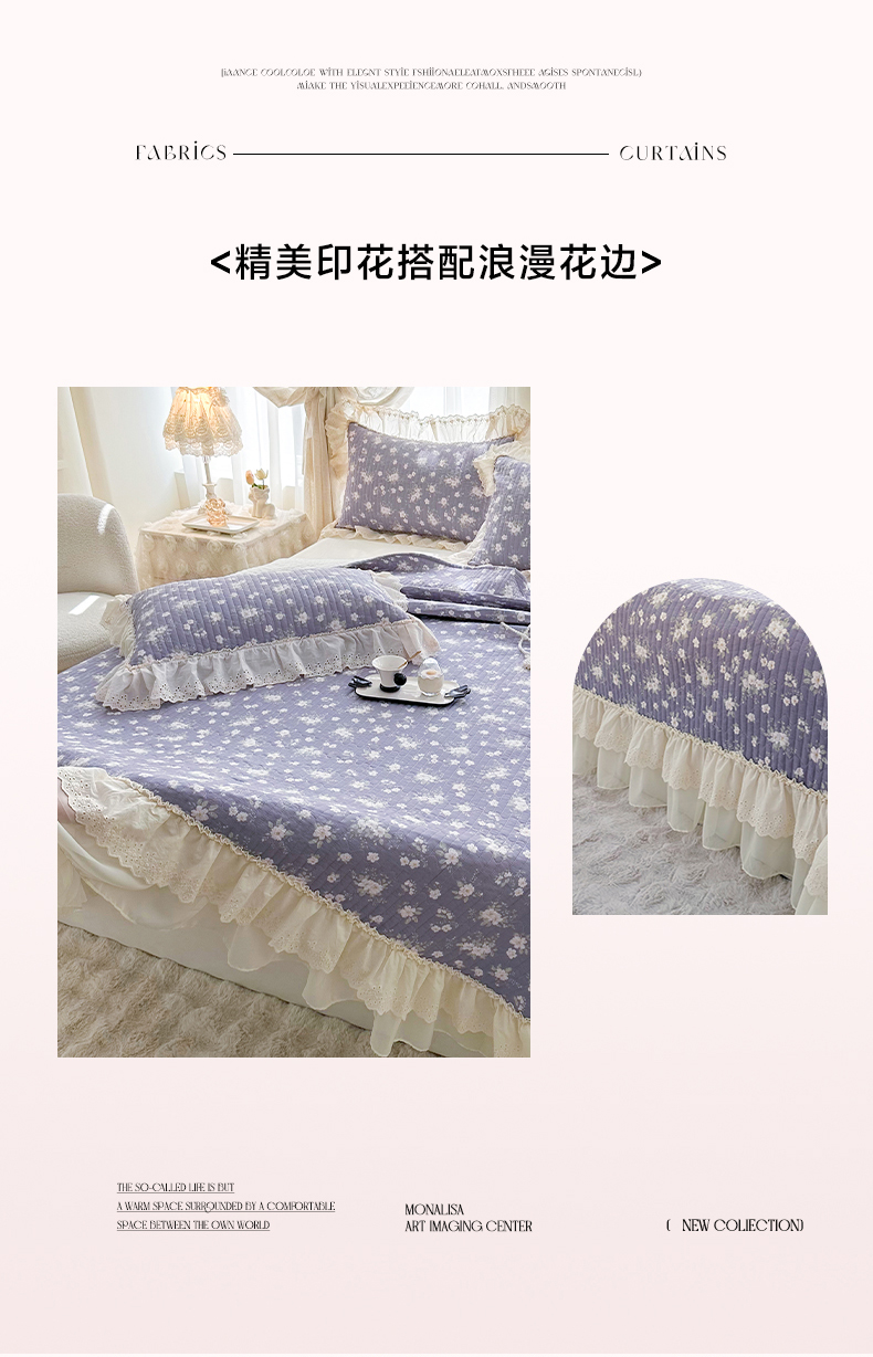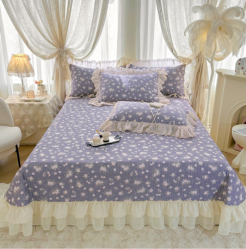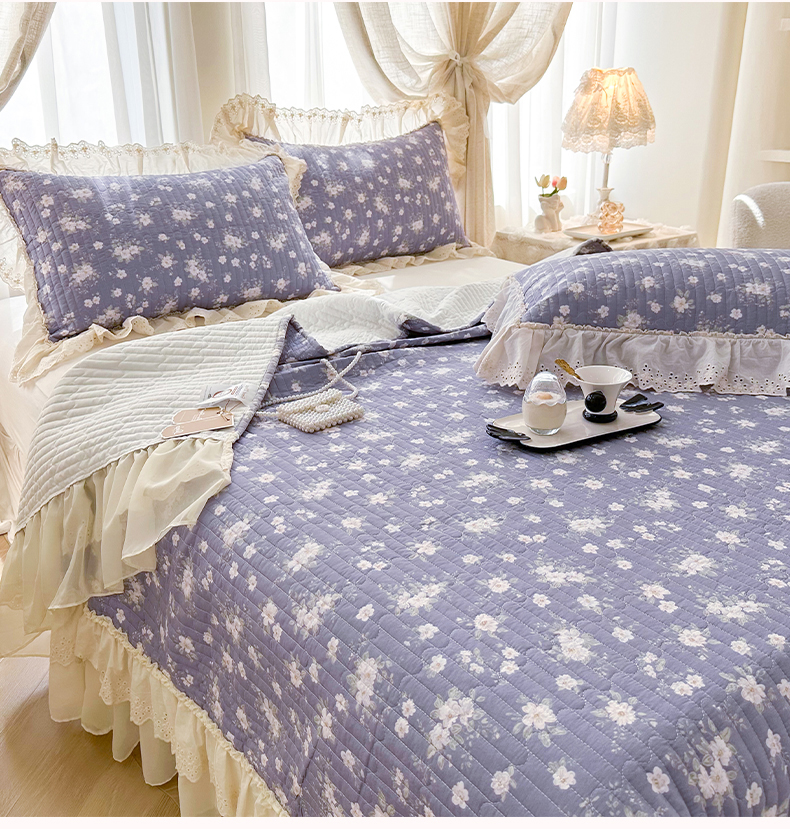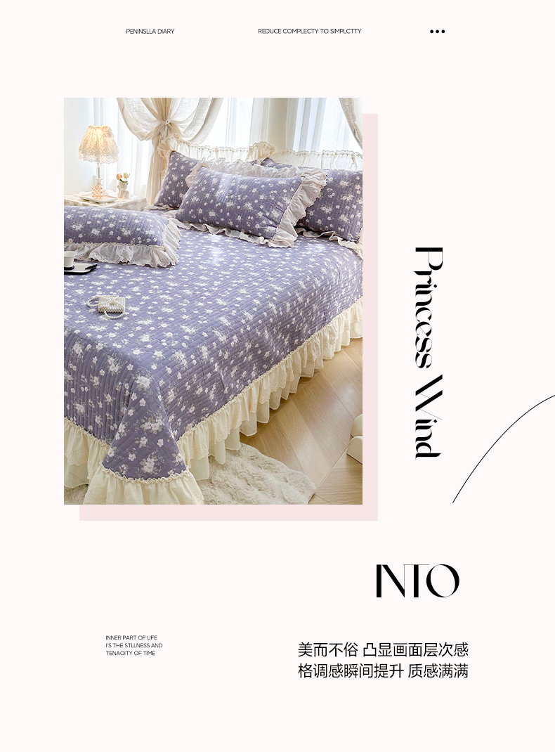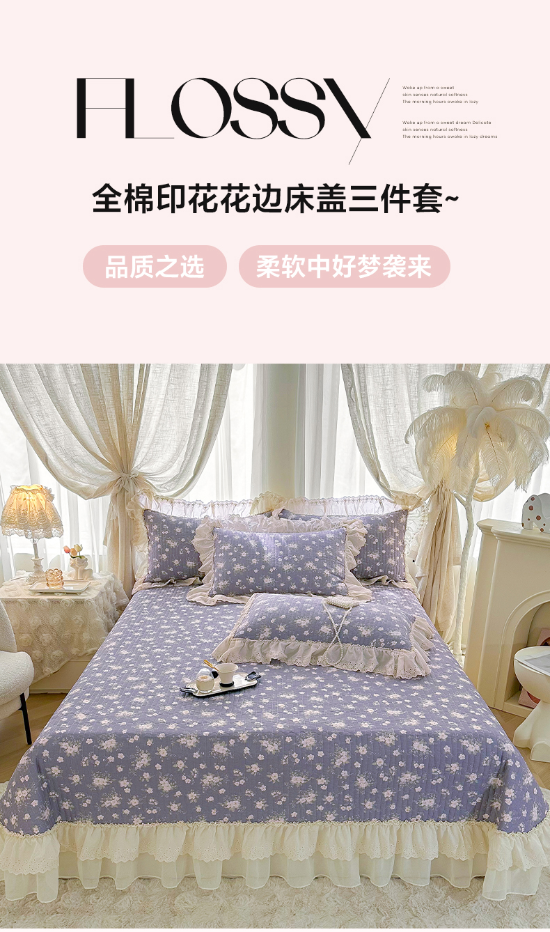 当前位置: 91家纺网 > 商品网购 > 床品套件 > 三件套 > 罗艺轩 2025新款全棉印花花边床盖三件套 花之恋