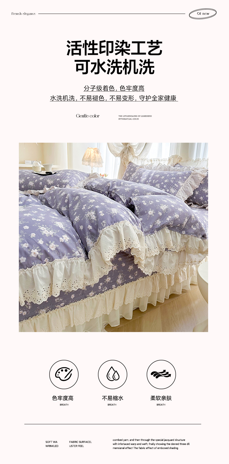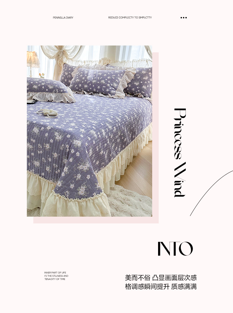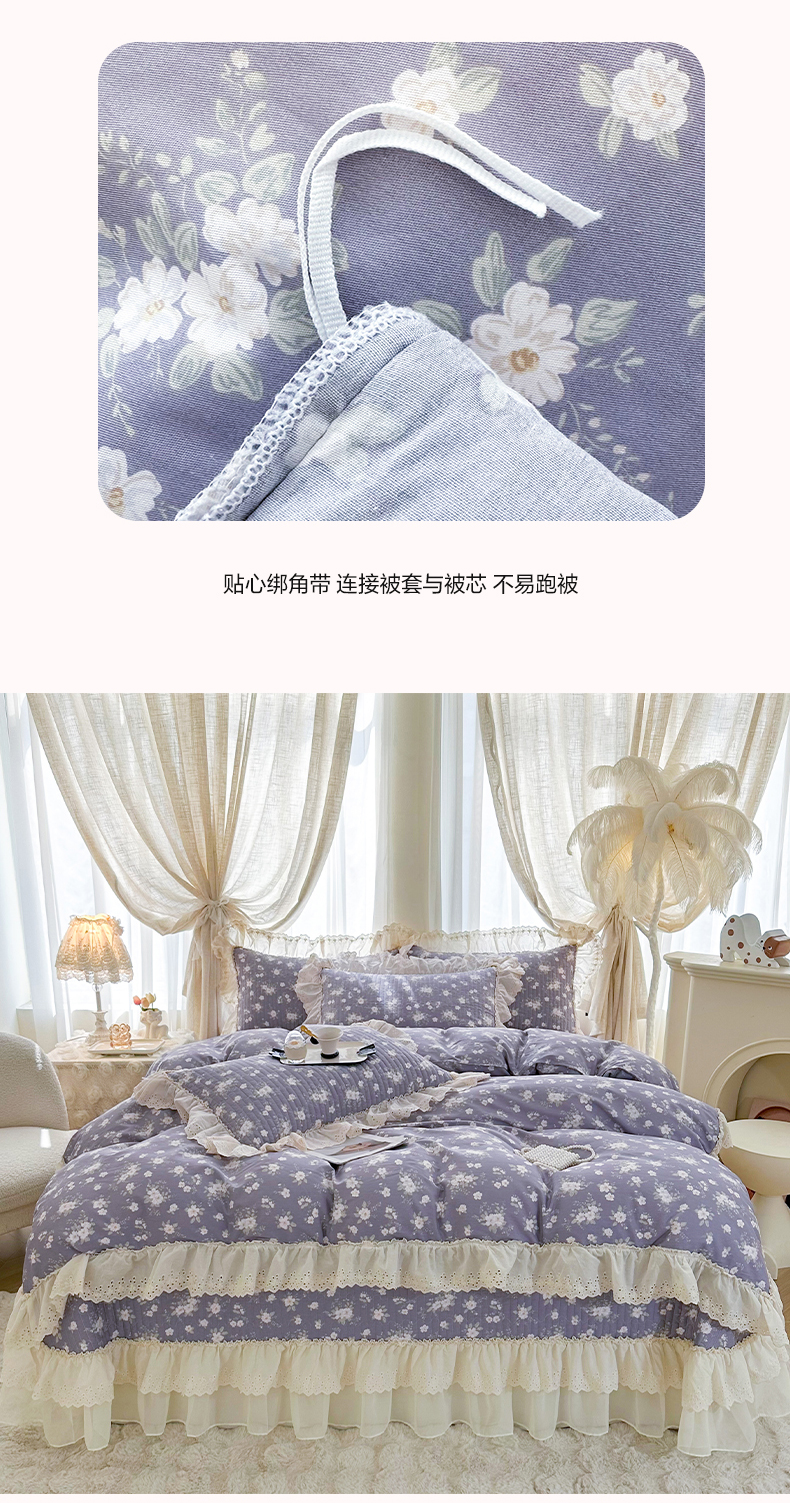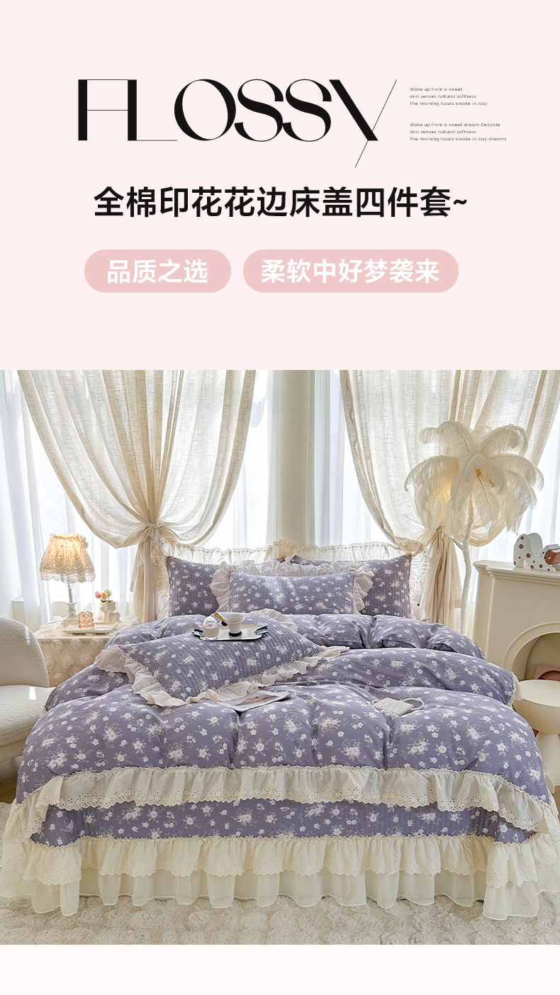 当前位置: 91家纺网 > 商品网购 > 床品套件 > 四件套 > 全棉普通四件套 > 罗艺轩 2025新款全棉印花花边床盖四件套 花之恋