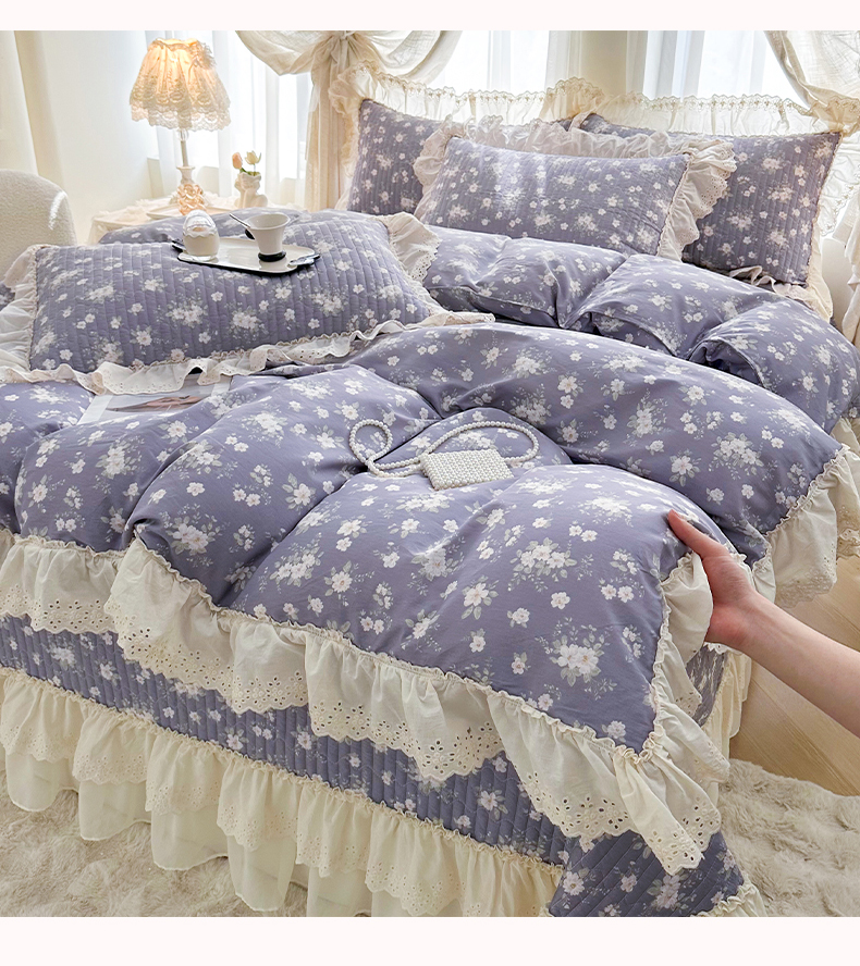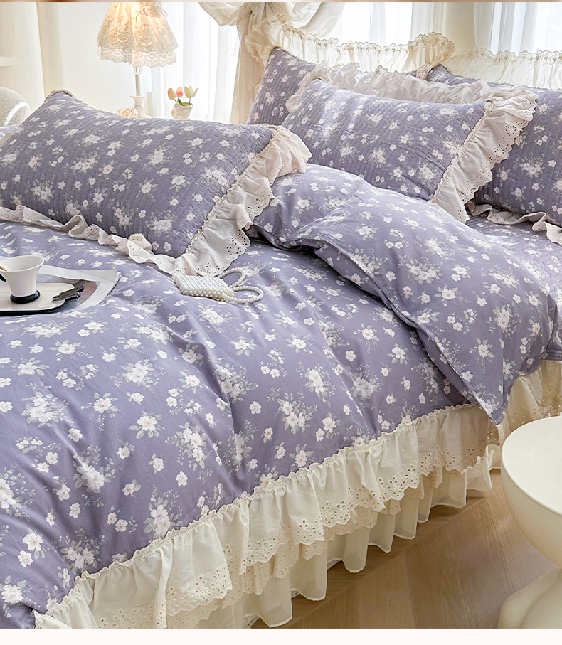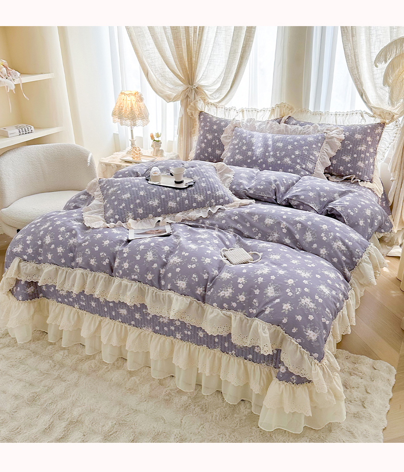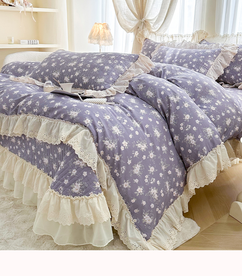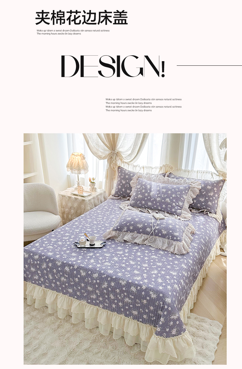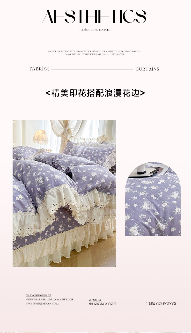 当前位置: 91家纺网 > 商品网购 > 床品套件 > 四件套 > 全棉普通四件套 > 罗艺轩 2025新款全棉印花花边床盖四件套 花之恋