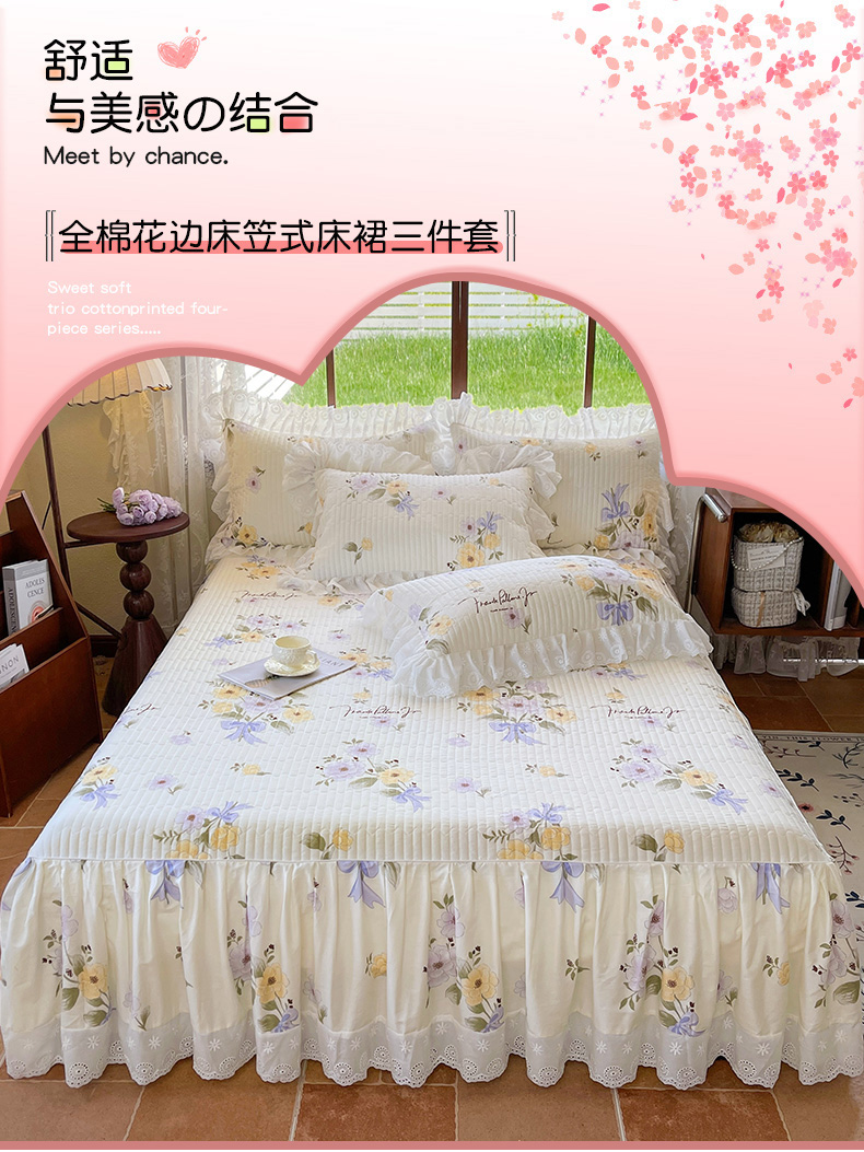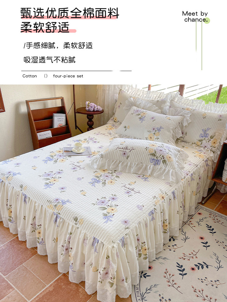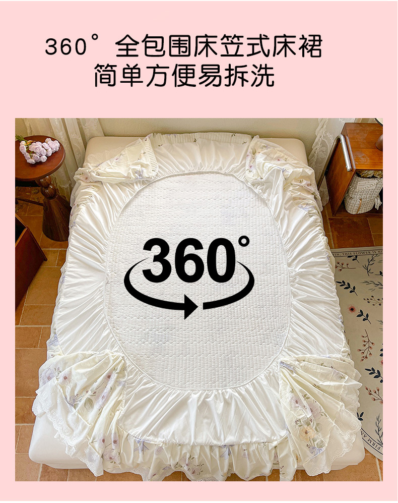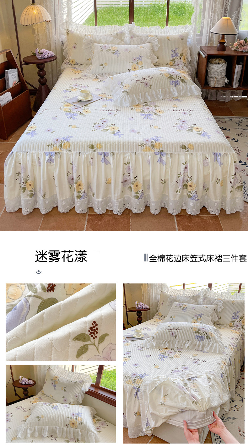 当前位置: 91家纺网 > 商品网购 > 床品套件 > 三件套 > 罗艺轩 2025新款全棉印花床笠式床裙三件套 迷雾花漾