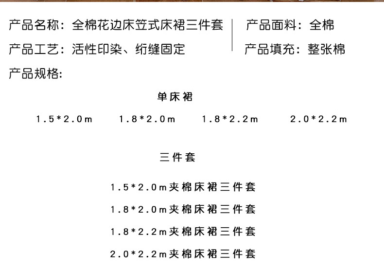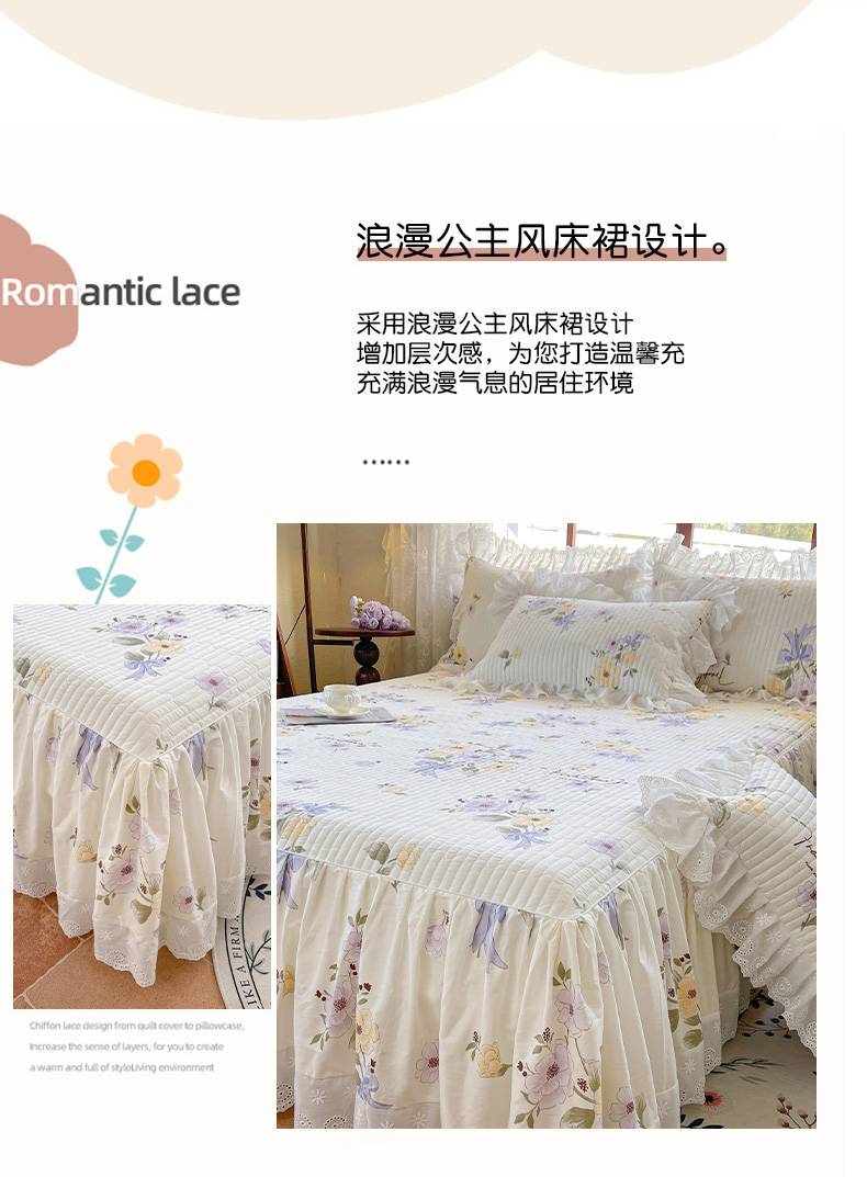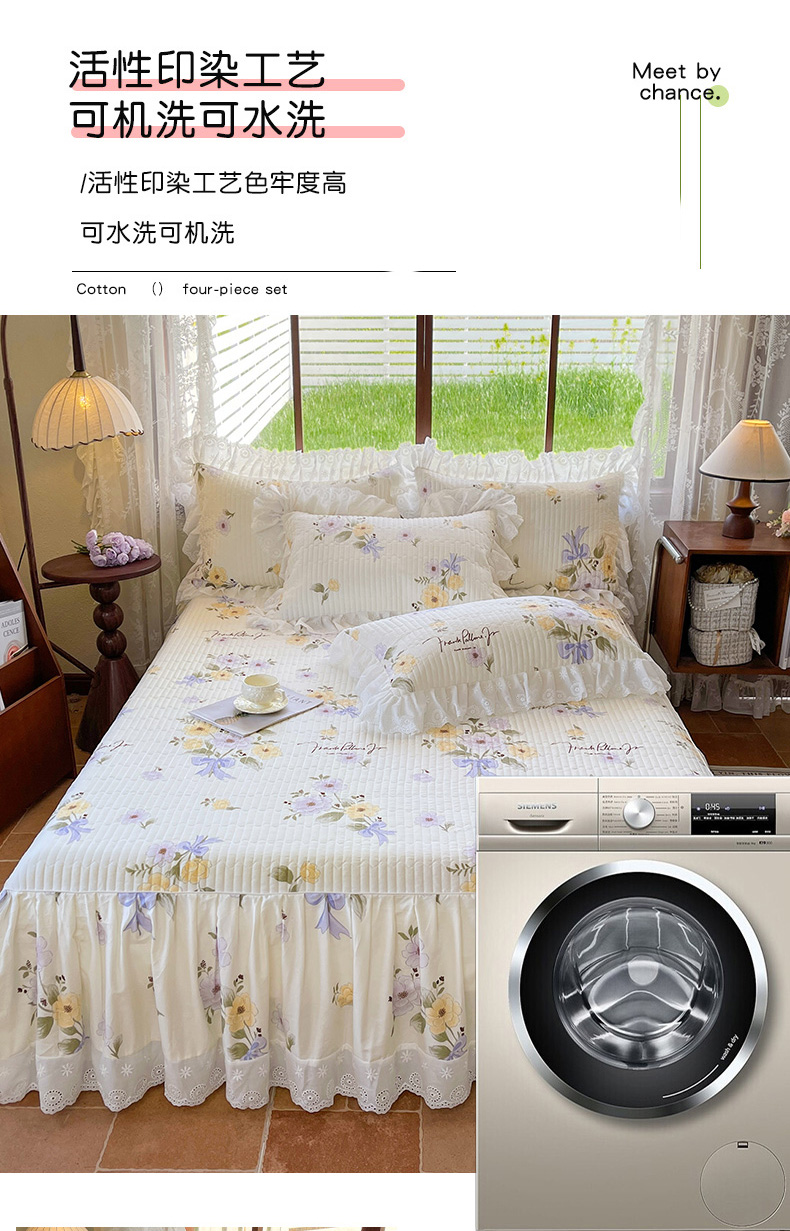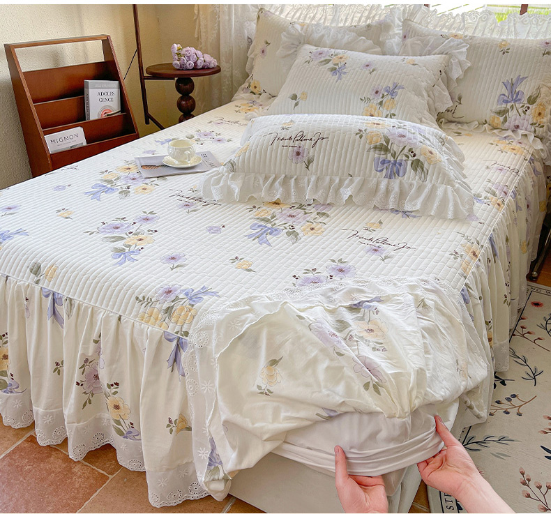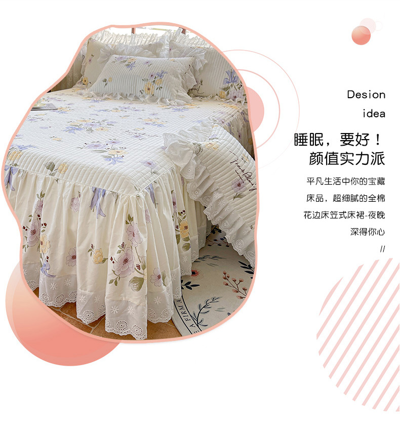 当前位置: 91家纺网 > 商品网购 > 床品套件 > 三件套 > 罗艺轩 2025新款全棉印花床笠式床裙三件套 迷雾花漾