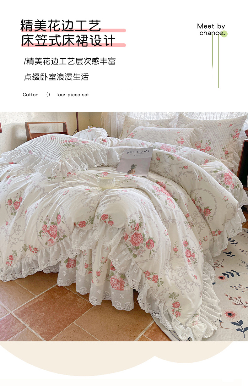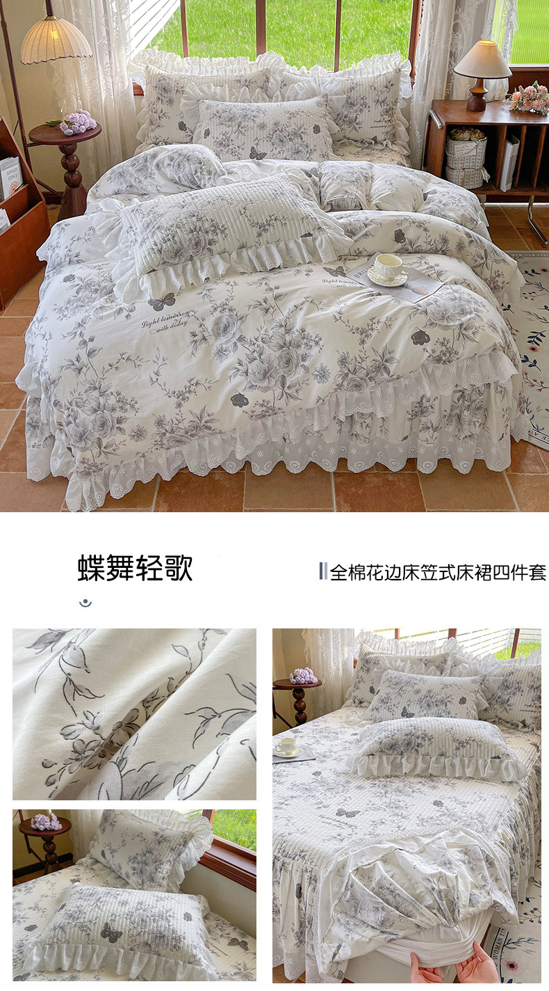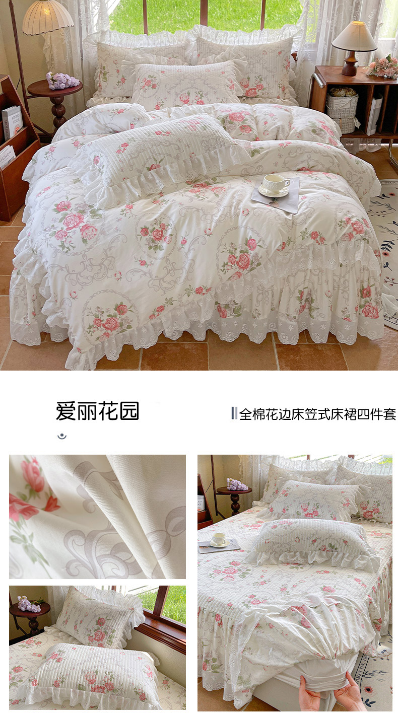 商品名称:(总)罗艺轩 2025新款全棉印花床笠式花边床裙四件套