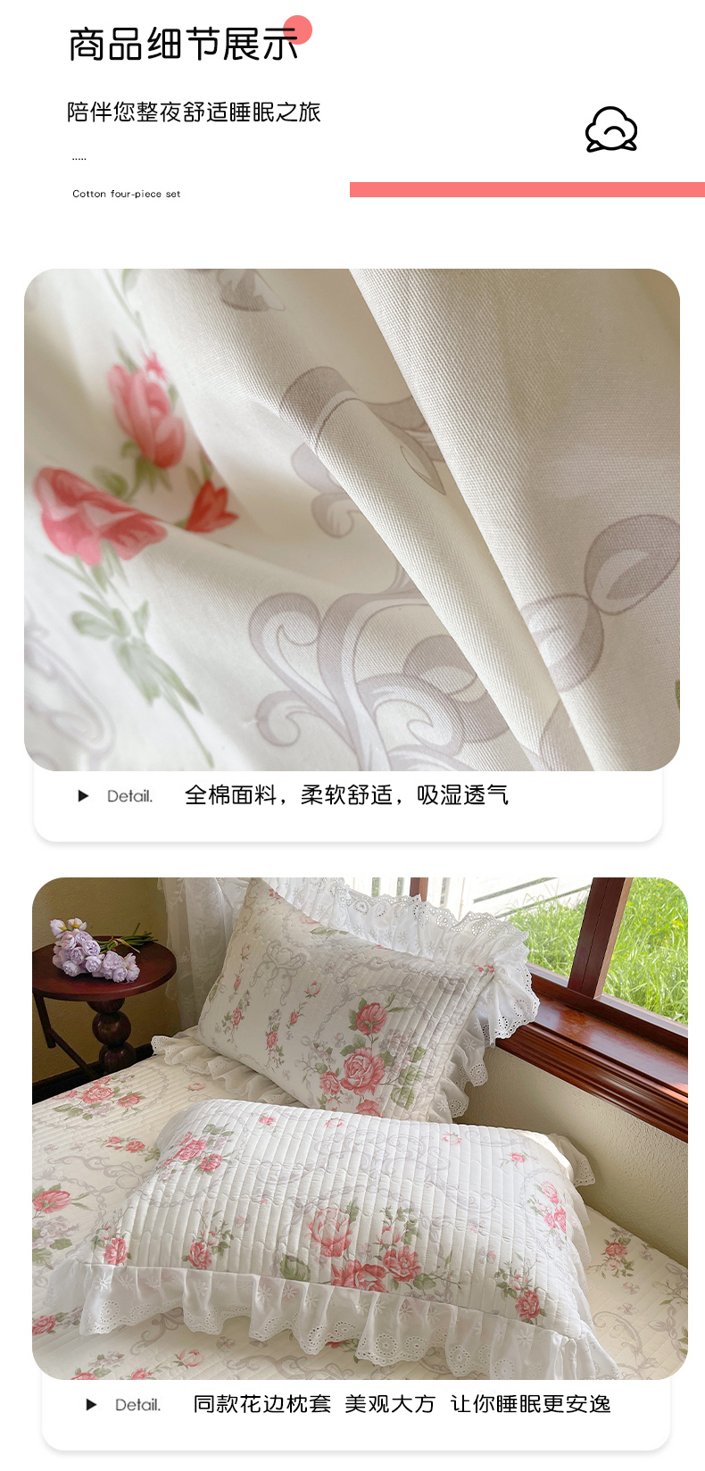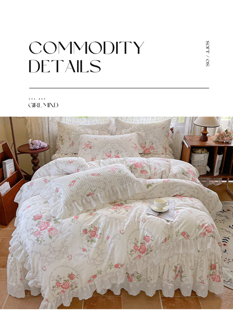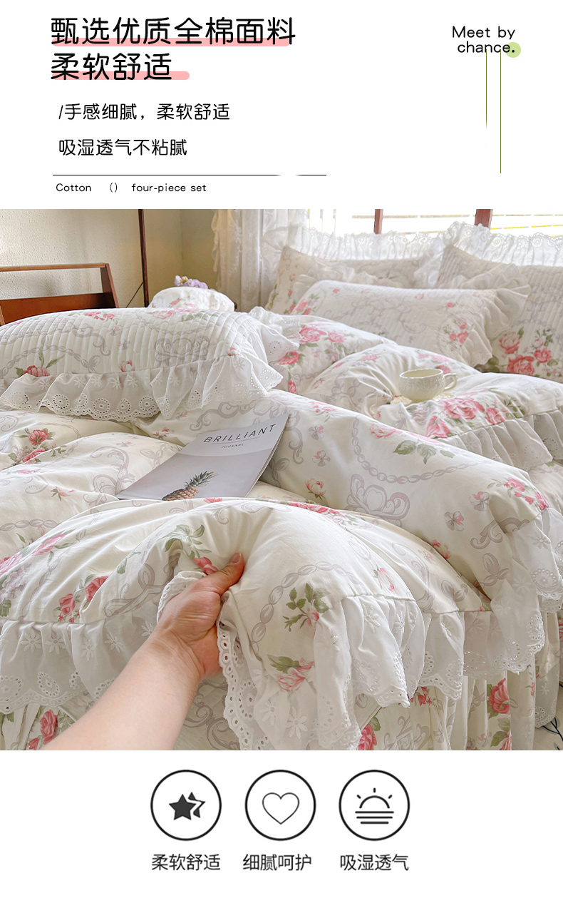 商品名称:(总)罗艺轩 2025新款全棉印花床笠式花边床裙四件套