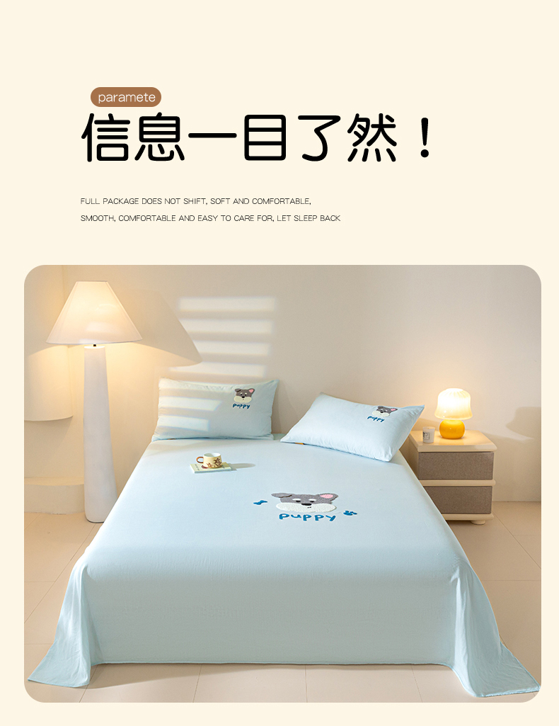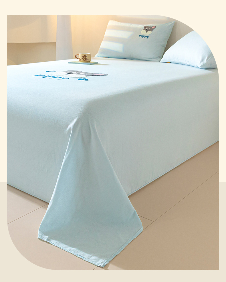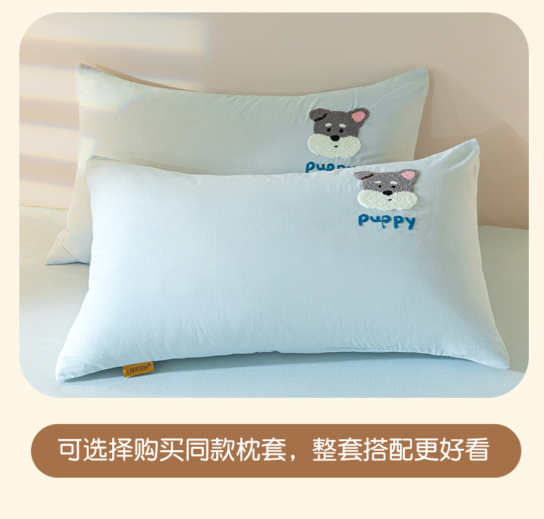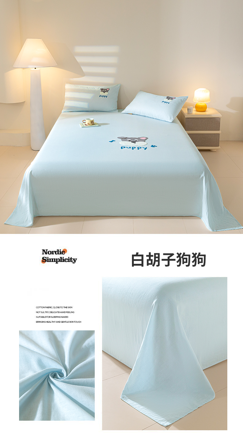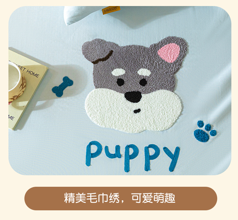 商品名称:居眠 2025新款全棉纯棉云感皱皱纱毛巾绣床单 白胡子狗狗