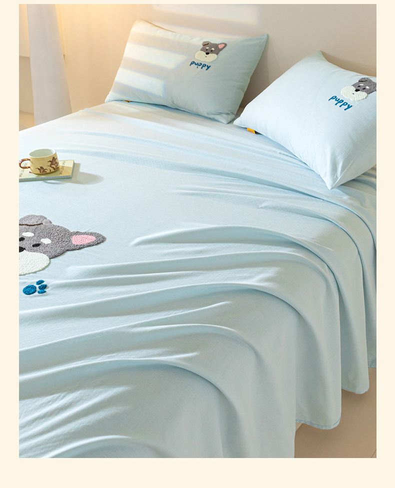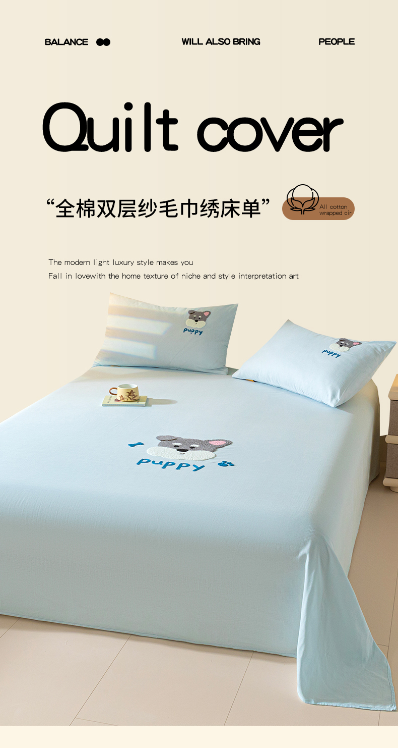 (总)居眠 2025新款全棉纯棉云感皱皱纱毛巾绣床单,白胡子狗狗,波点甜甜圈,大象先生,蝴蝶猫咪,腊肠樱桃,三只小可爱,圣诞树,兔兔小姐,外星小鸟,小象汽车,组合图仅做展示