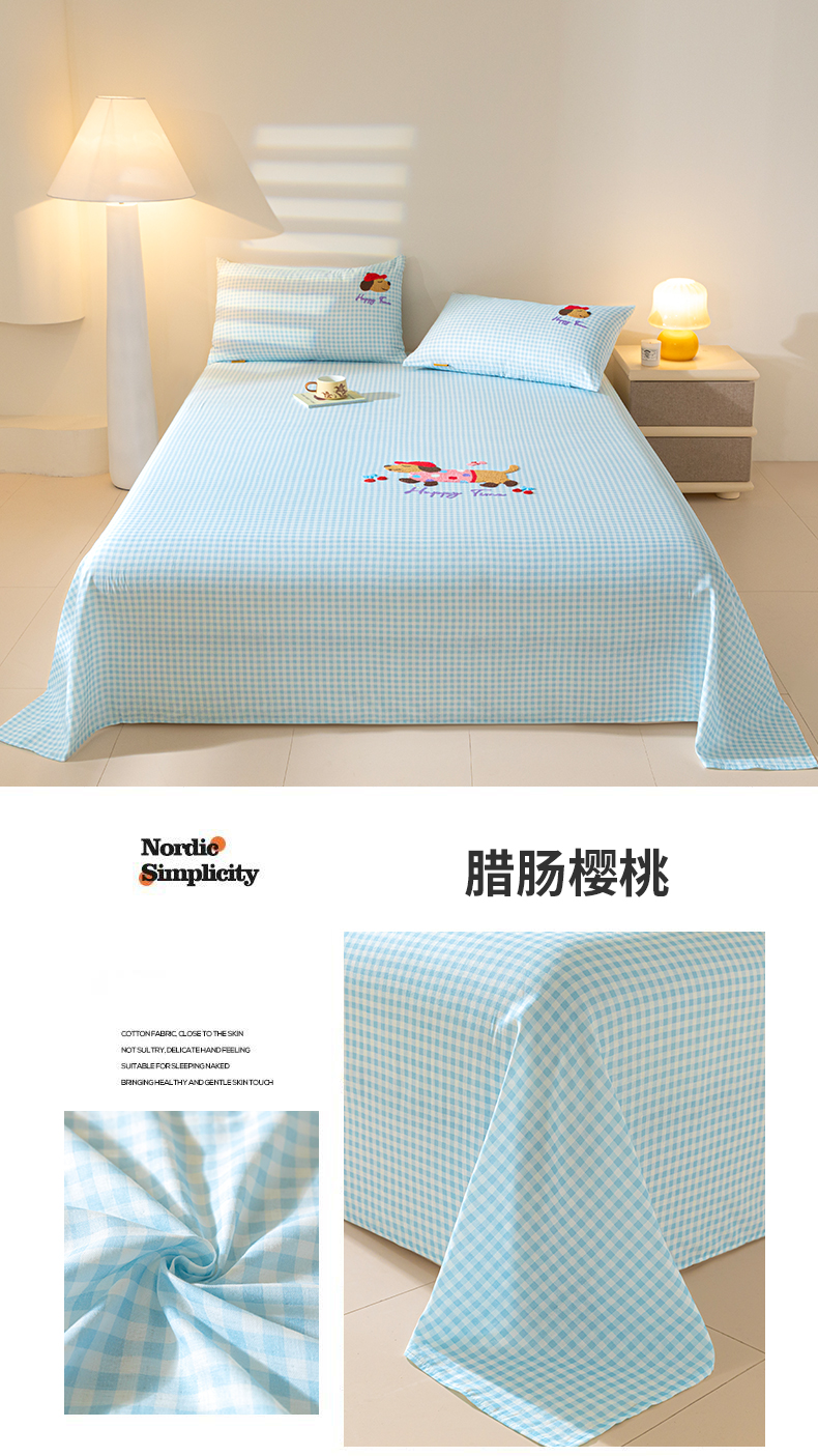 (总)居眠 2025新款全棉纯棉老粗布印花席子凉席床单床笠,Hello Kitty,哈巴狗,黑色格纹,红格纹,灰色线条,蓝纹条,青色花,温妮莎,组合图仅供展示