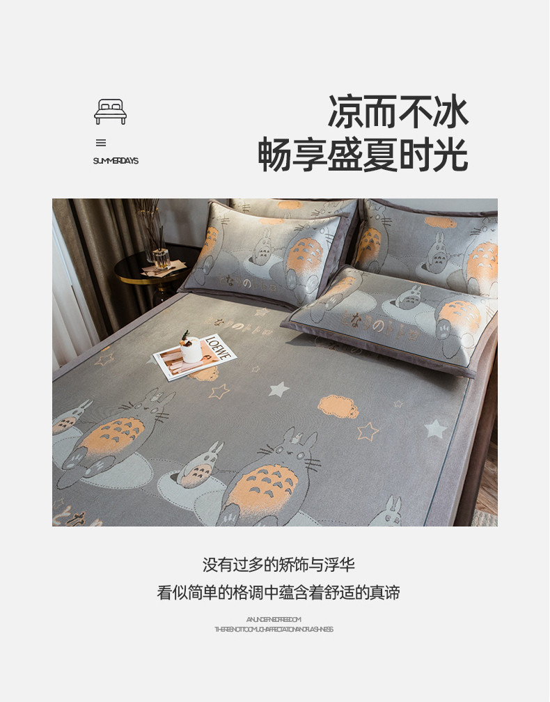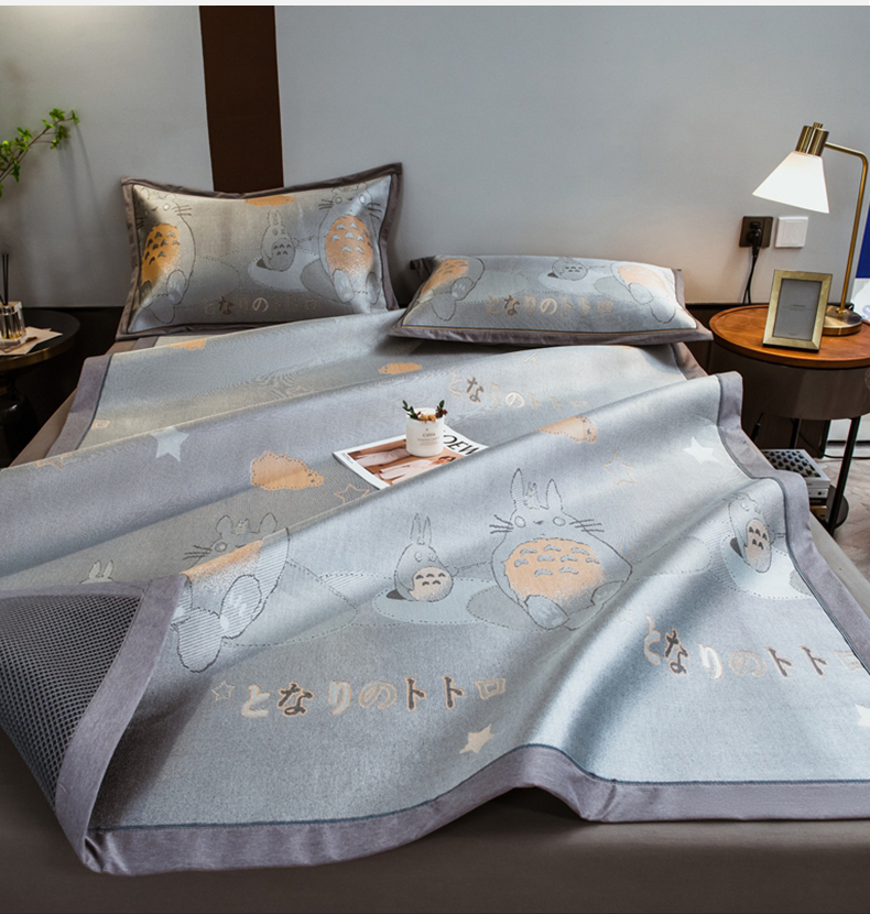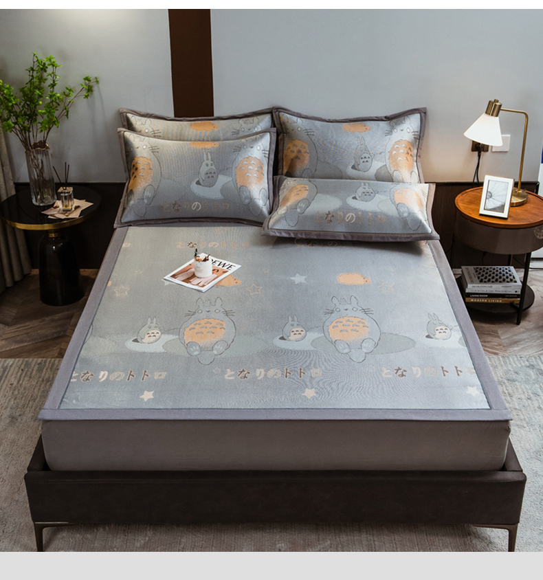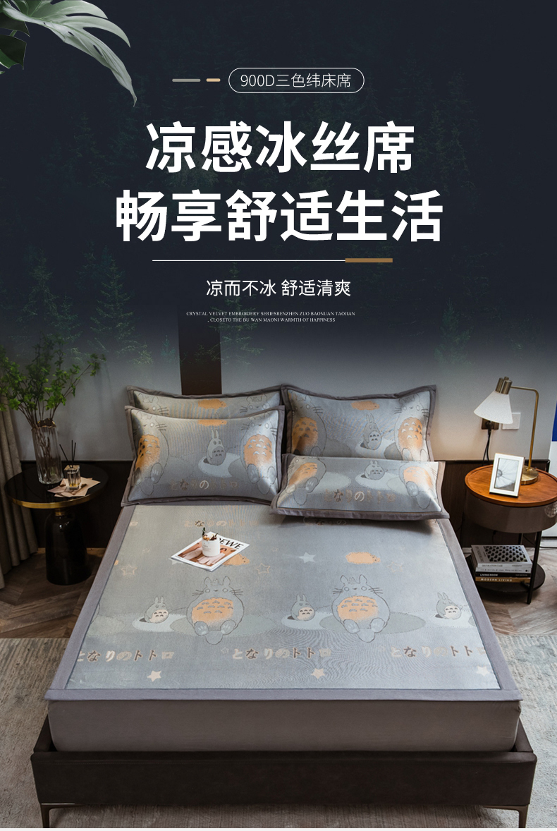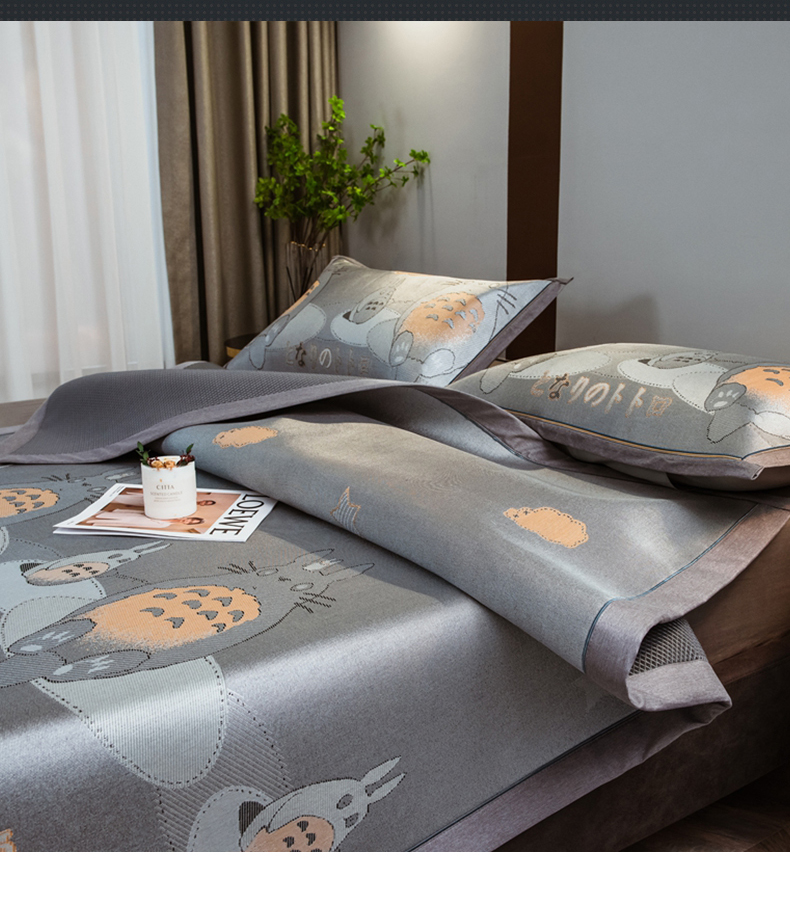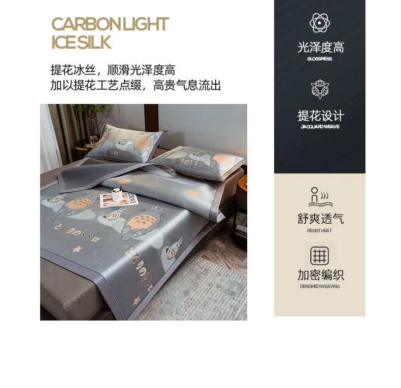 商品名称:全季家居 2025新款900D高精密三色纬提花冰丝凉席 床席-龙小猫-灰