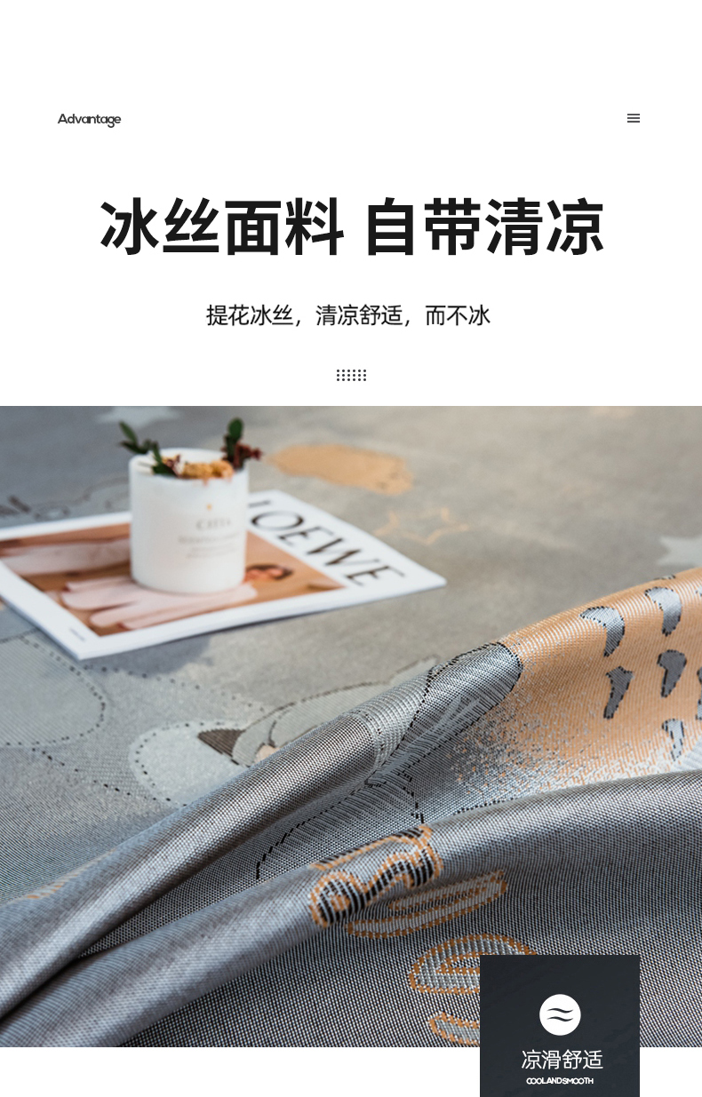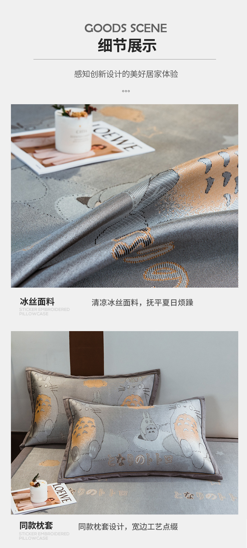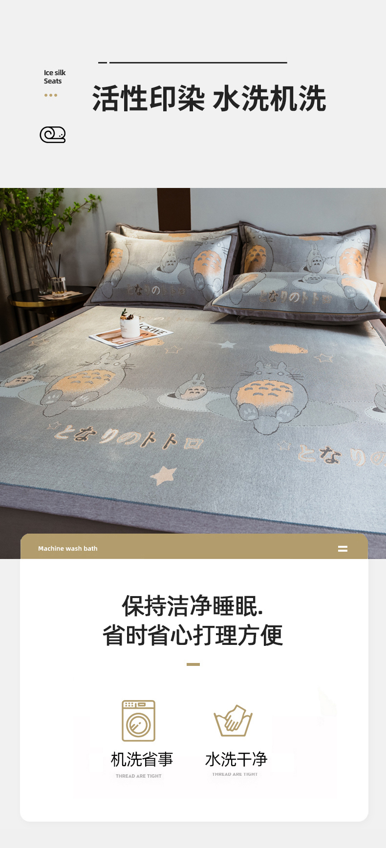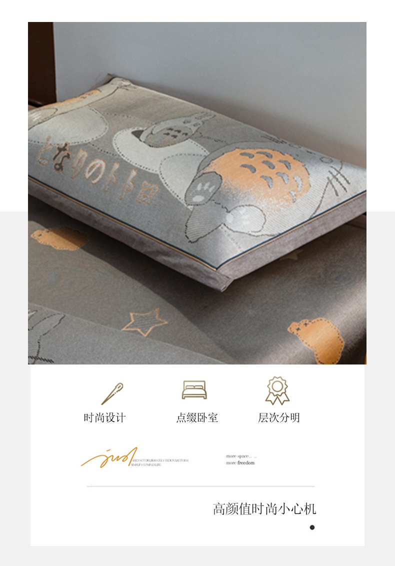 商品名称:全季家居 2025新款900D高精密三色纬提花冰丝凉席 床席-龙小猫-灰