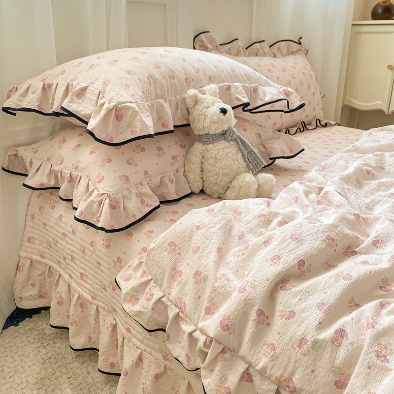 商品名称:2025新款云感双层纱夏被四件套-床盖款 月季