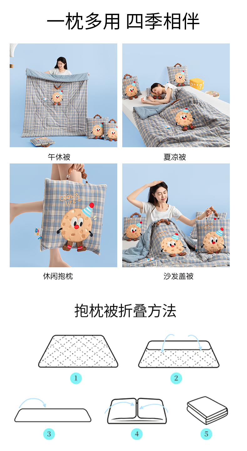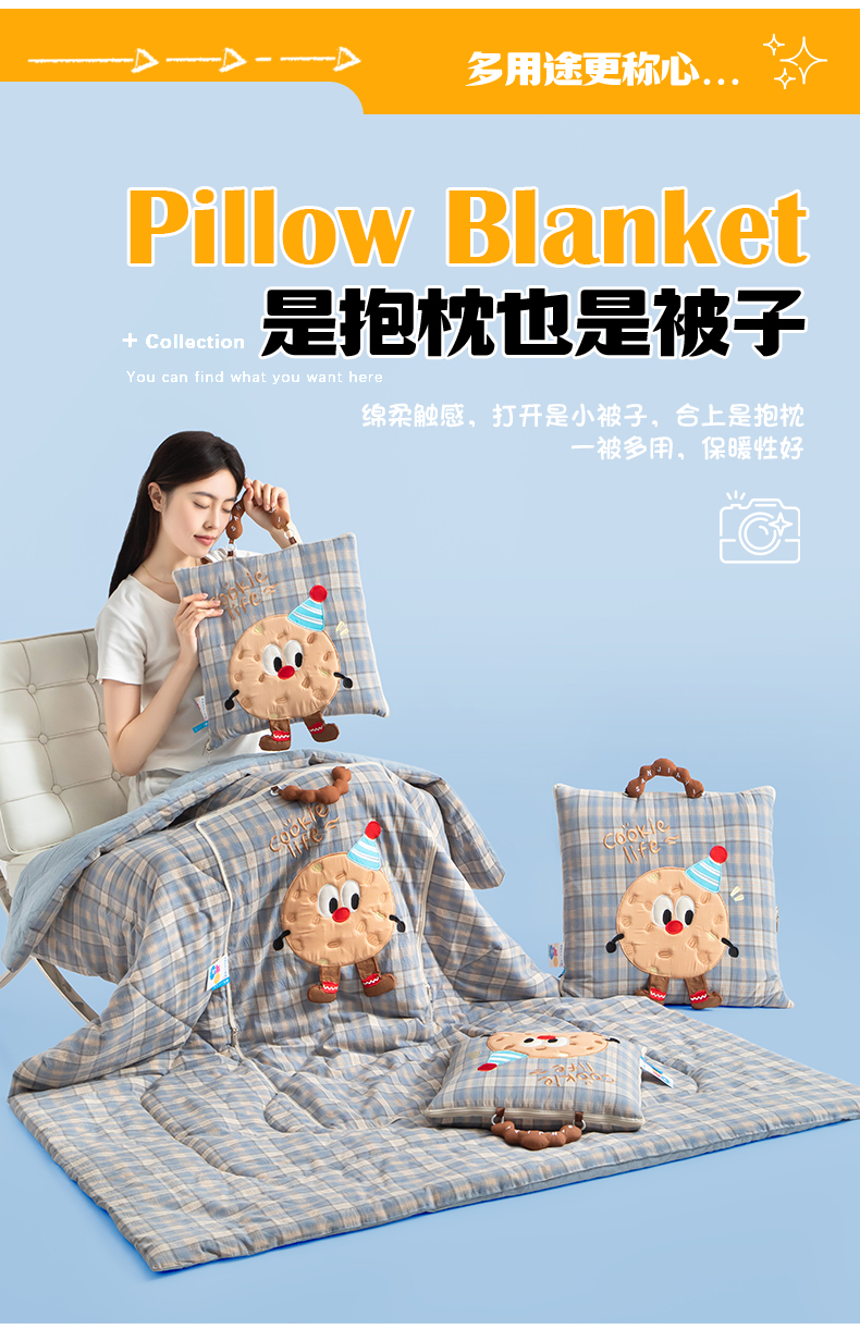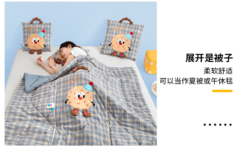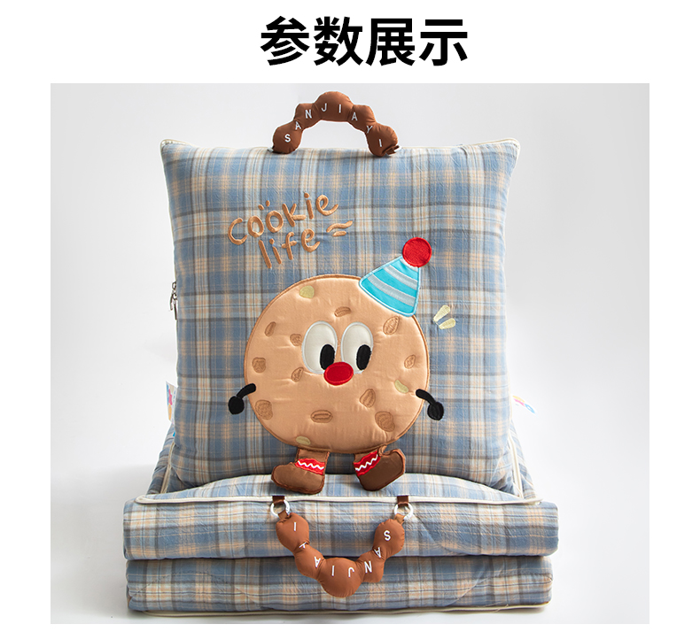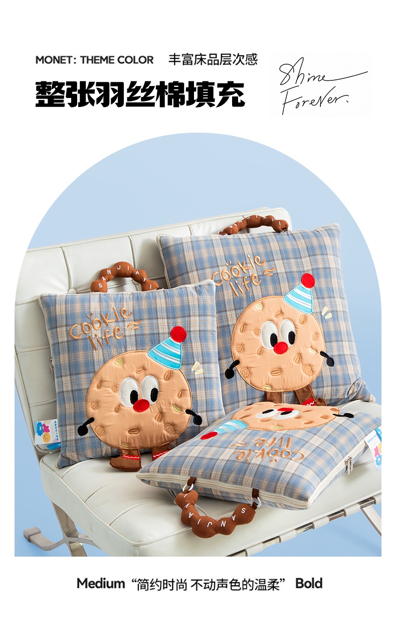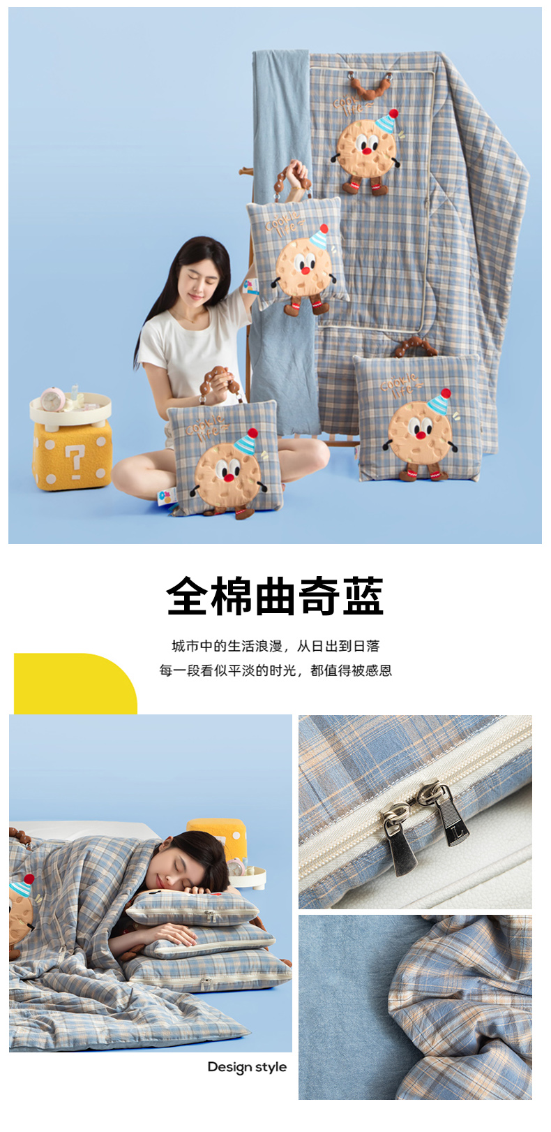 商品名称:雷娜家居 2025新款全棉手提款曲奇系列抱枕被 全棉曲奇蓝
