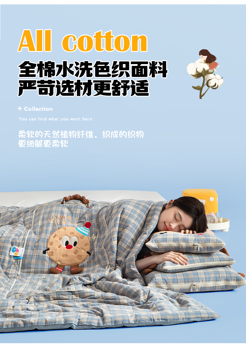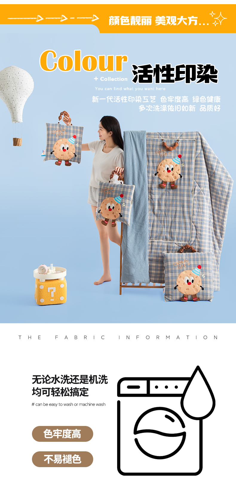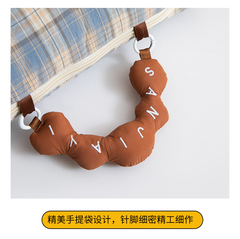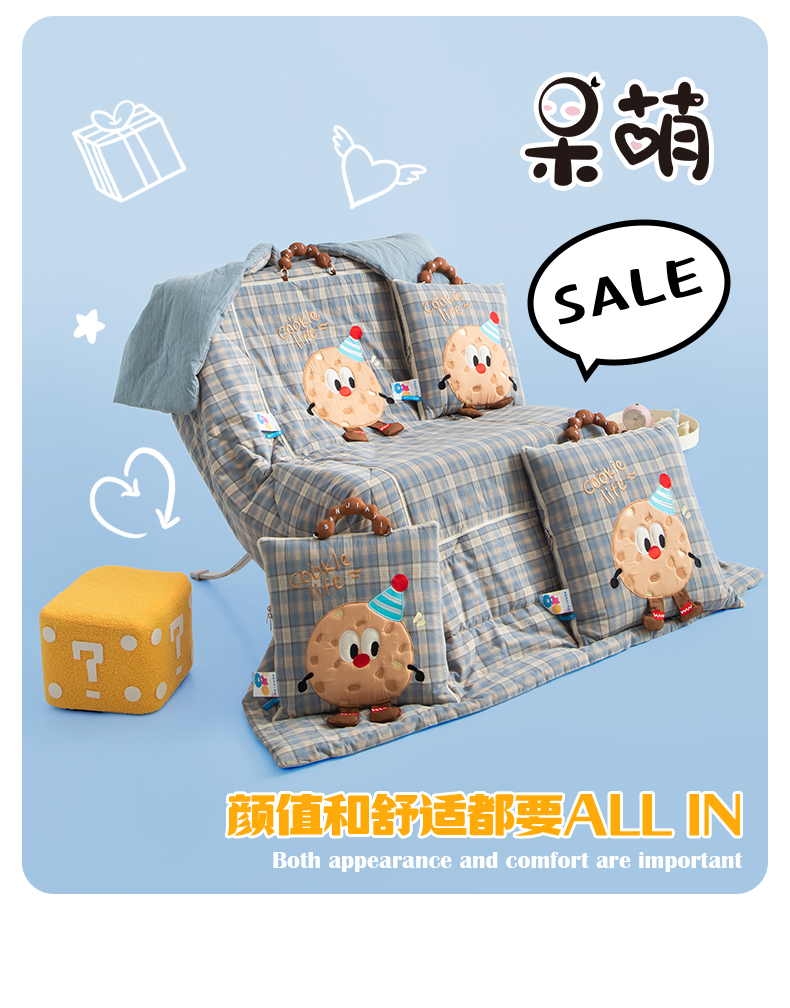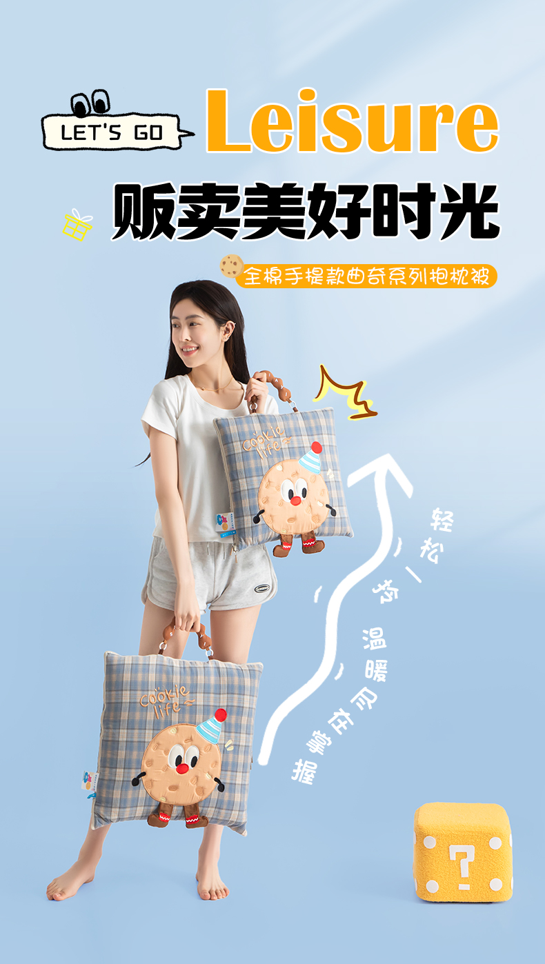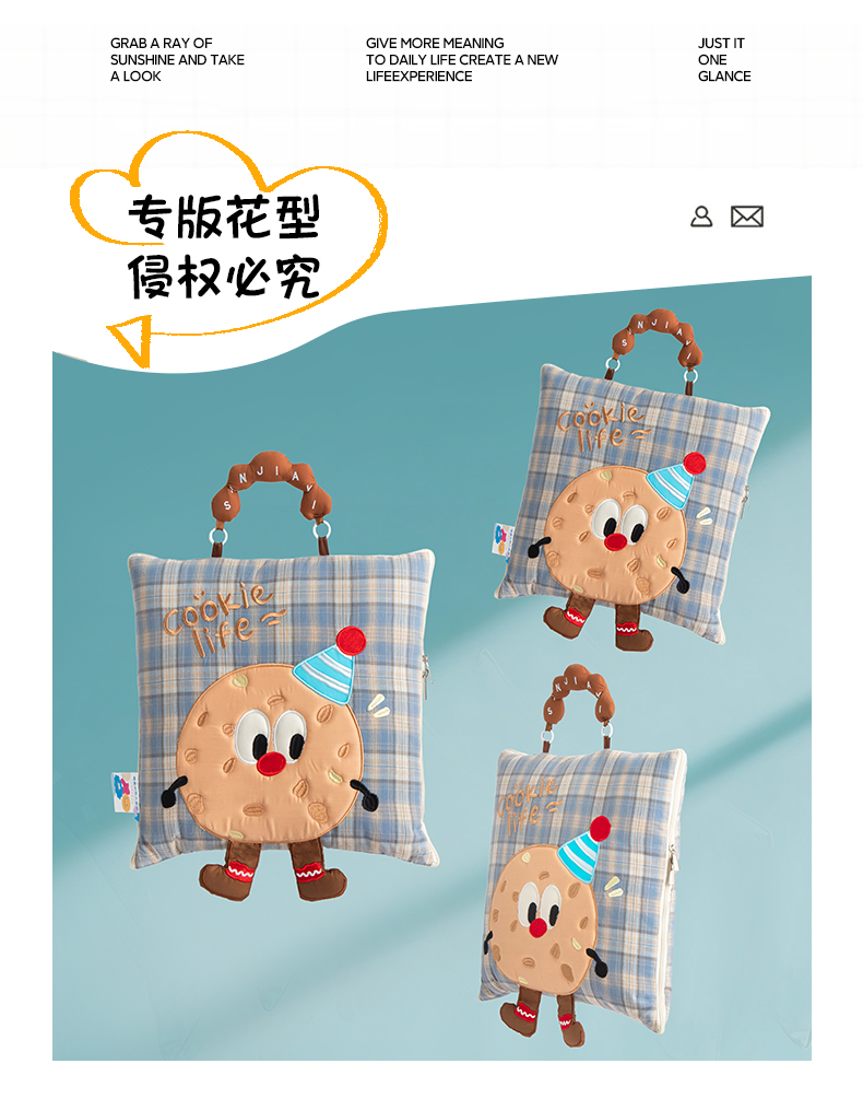 商品名称:雷娜家居 2025新款全棉手提款曲奇系列抱枕被 全棉曲奇蓝