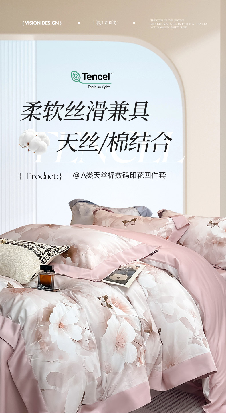 当前位置: 91家纺网 > 商品网购 > 床品套件 > 四件套 > 其它四件套 > 2025新品A类100支天丝棉夹棉床盖床笠四件套全棉床单加厚高端数码印花长绒棉夏季轻奢真丝床上用品 蝶织梦-粉