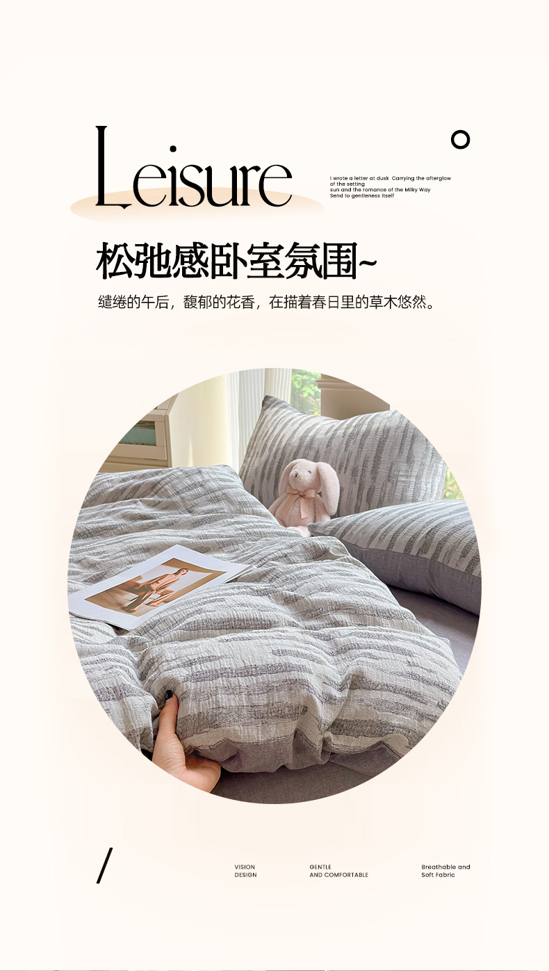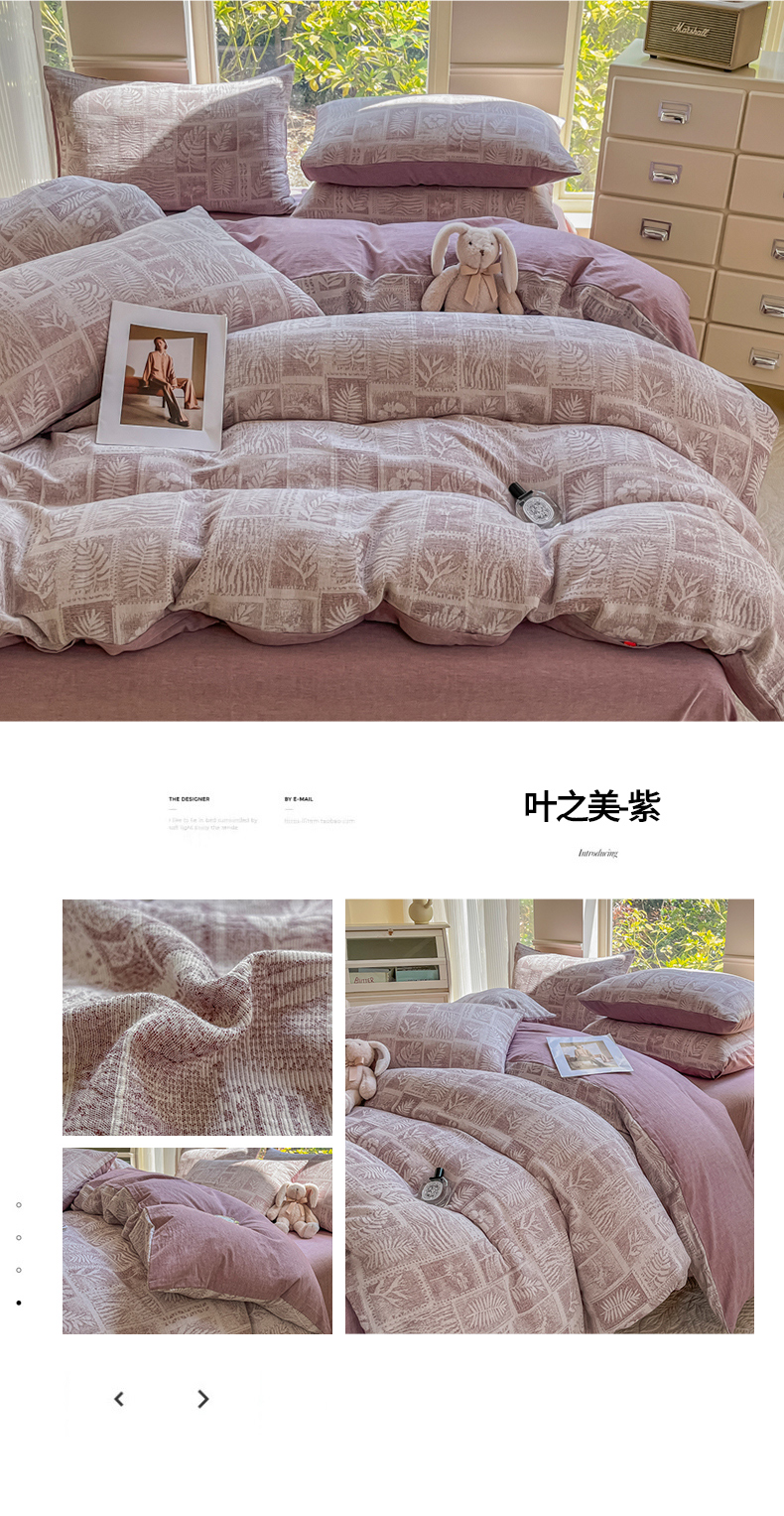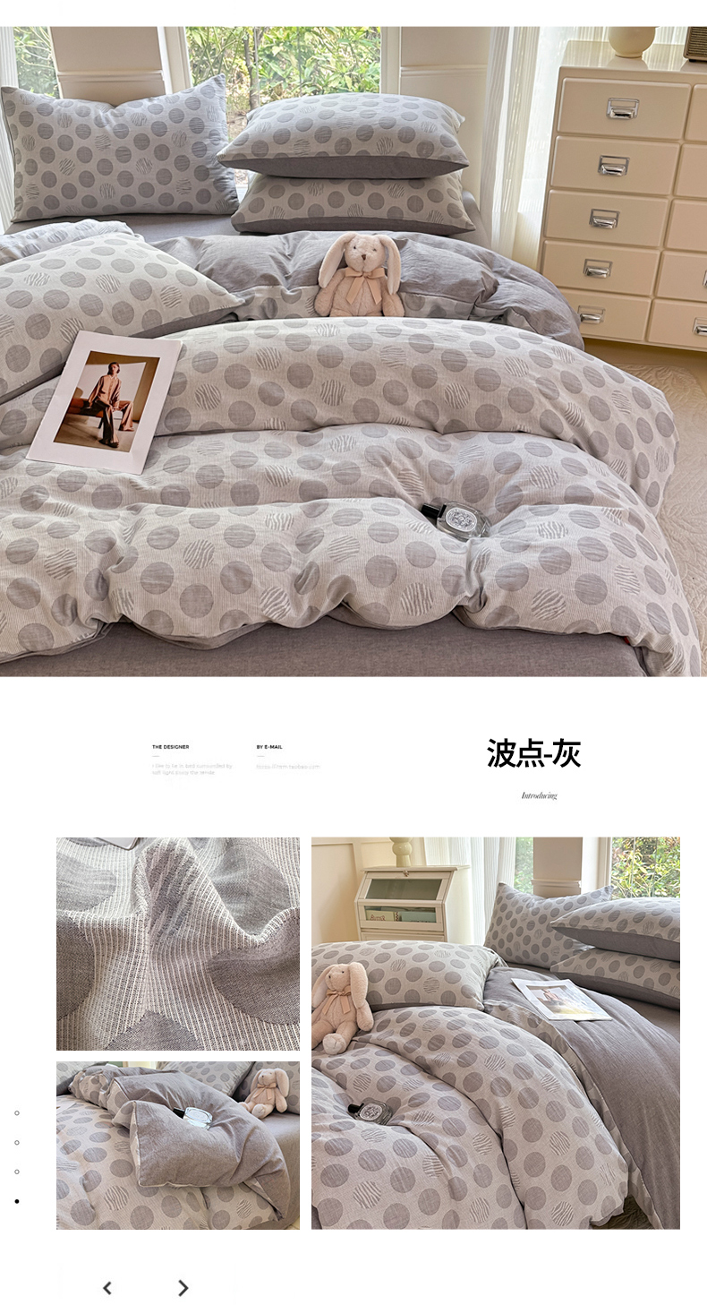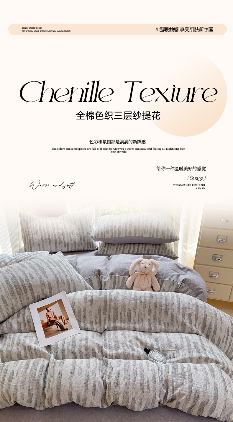 当前位置: 91家纺网 > 商品网购 > 床品套件 > 四件套 > 色织四件套 > 菡宝 2025新款a类母婴级纯棉全棉纯棉色织三层纱提花系列四件套 艾瑞-灰