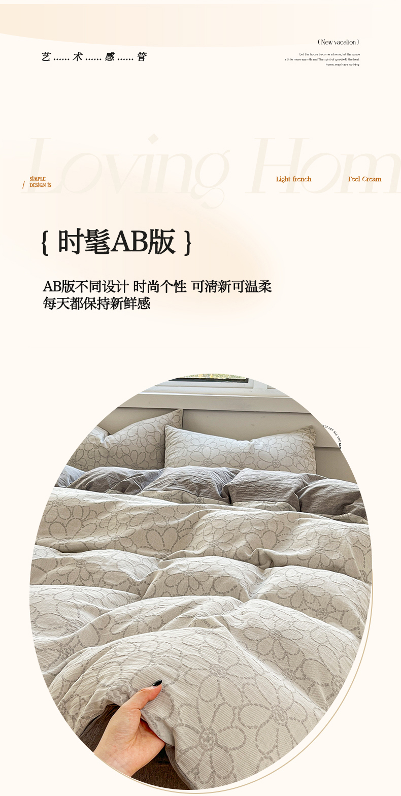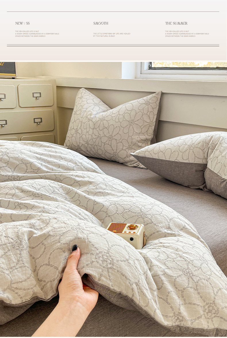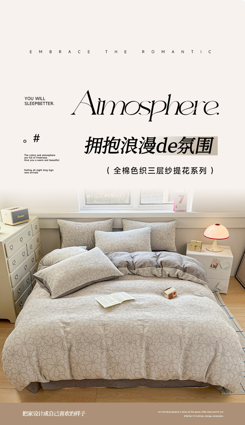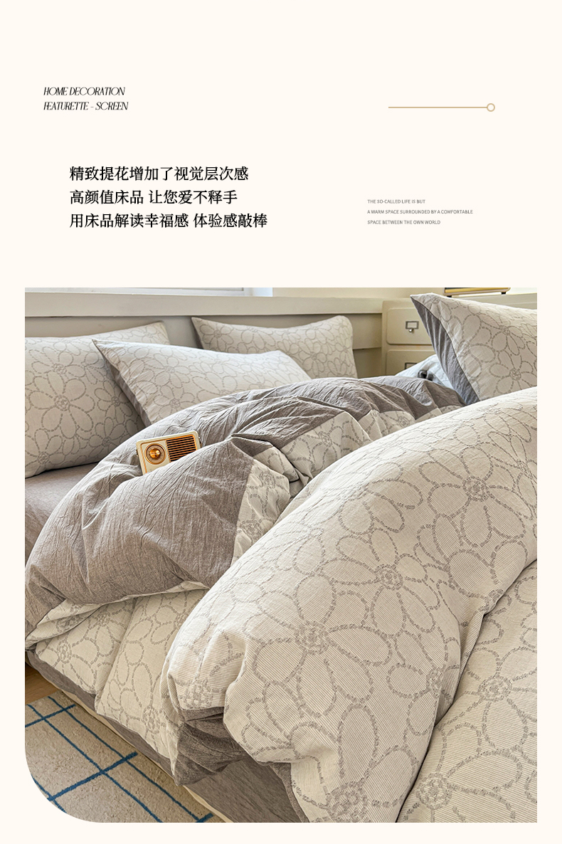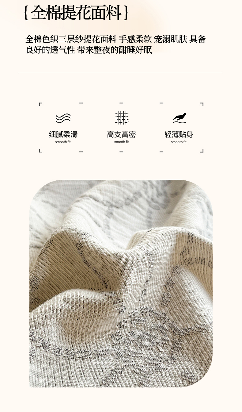 当前位置: 91家纺网 > 商品网购 > 床品套件 > 四件套 > 色织四件套 > 菡宝 2025新款a类母婴级纯棉全棉纯棉色织三层纱提花系列四件套 洛可可-灰