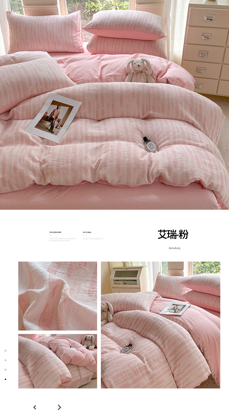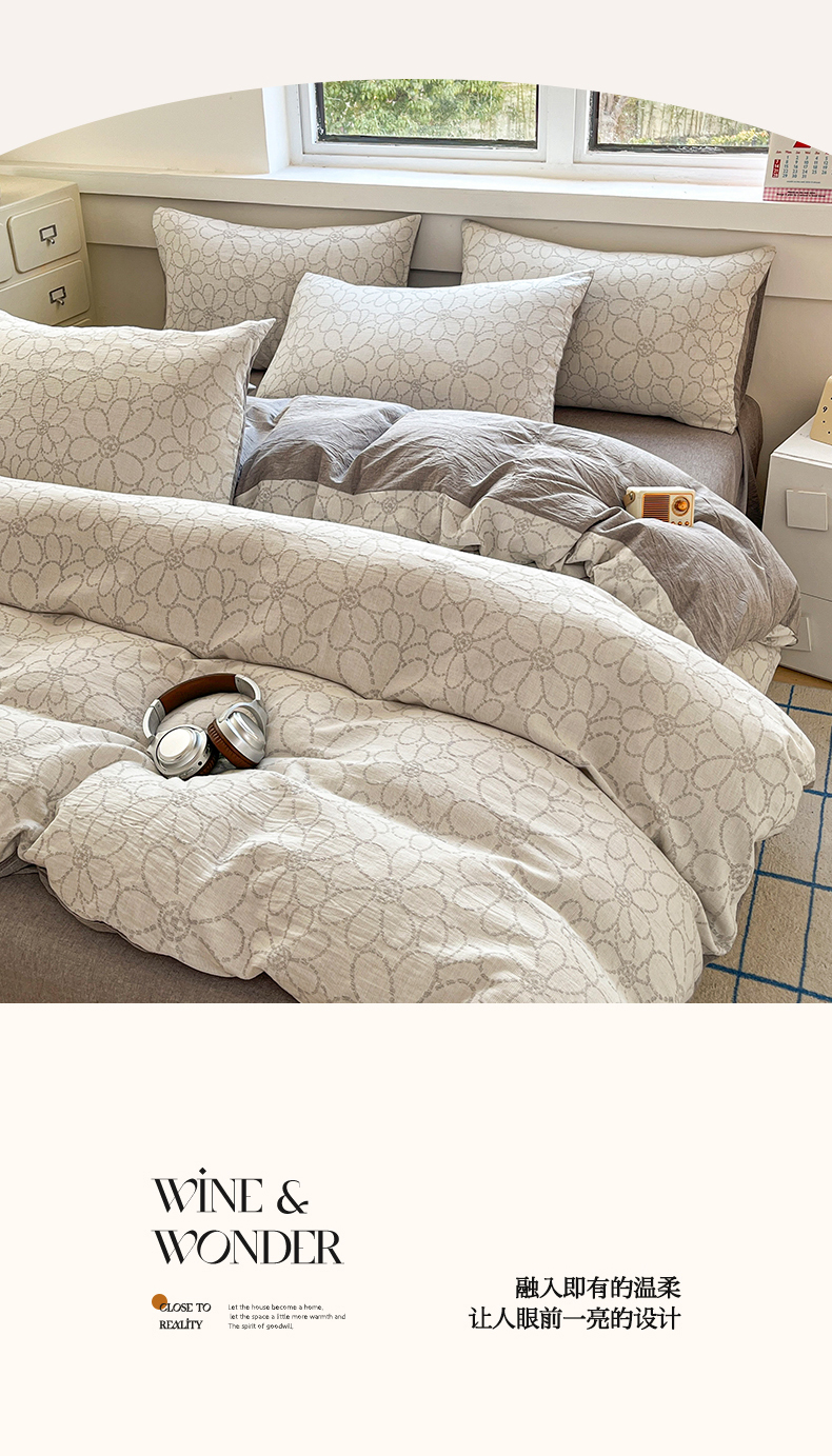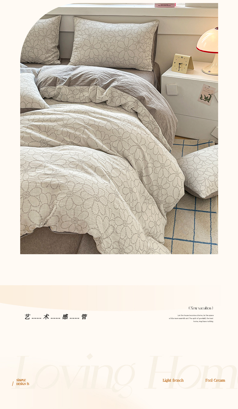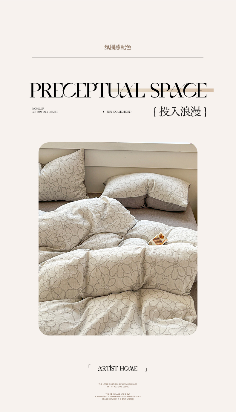 当前位置: 91家纺网 > 商品网购 > 床品套件 > 四件套 > 色织四件套 > 菡宝 2025新款a类母婴级纯棉全棉纯棉色织三层纱提花系列四件套 洛可可-灰