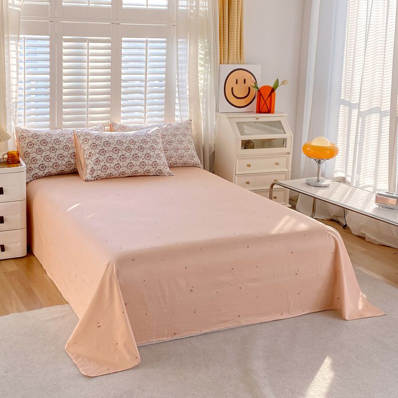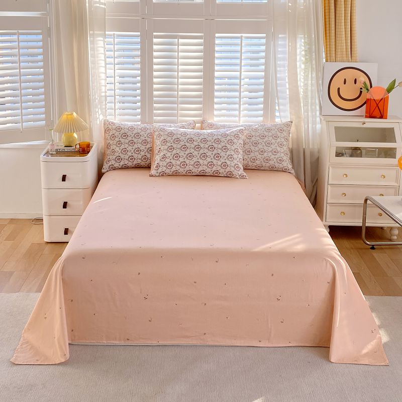 洺兰2025年13070全棉喷气印花纯棉床单小清新花卉北欧风单床单