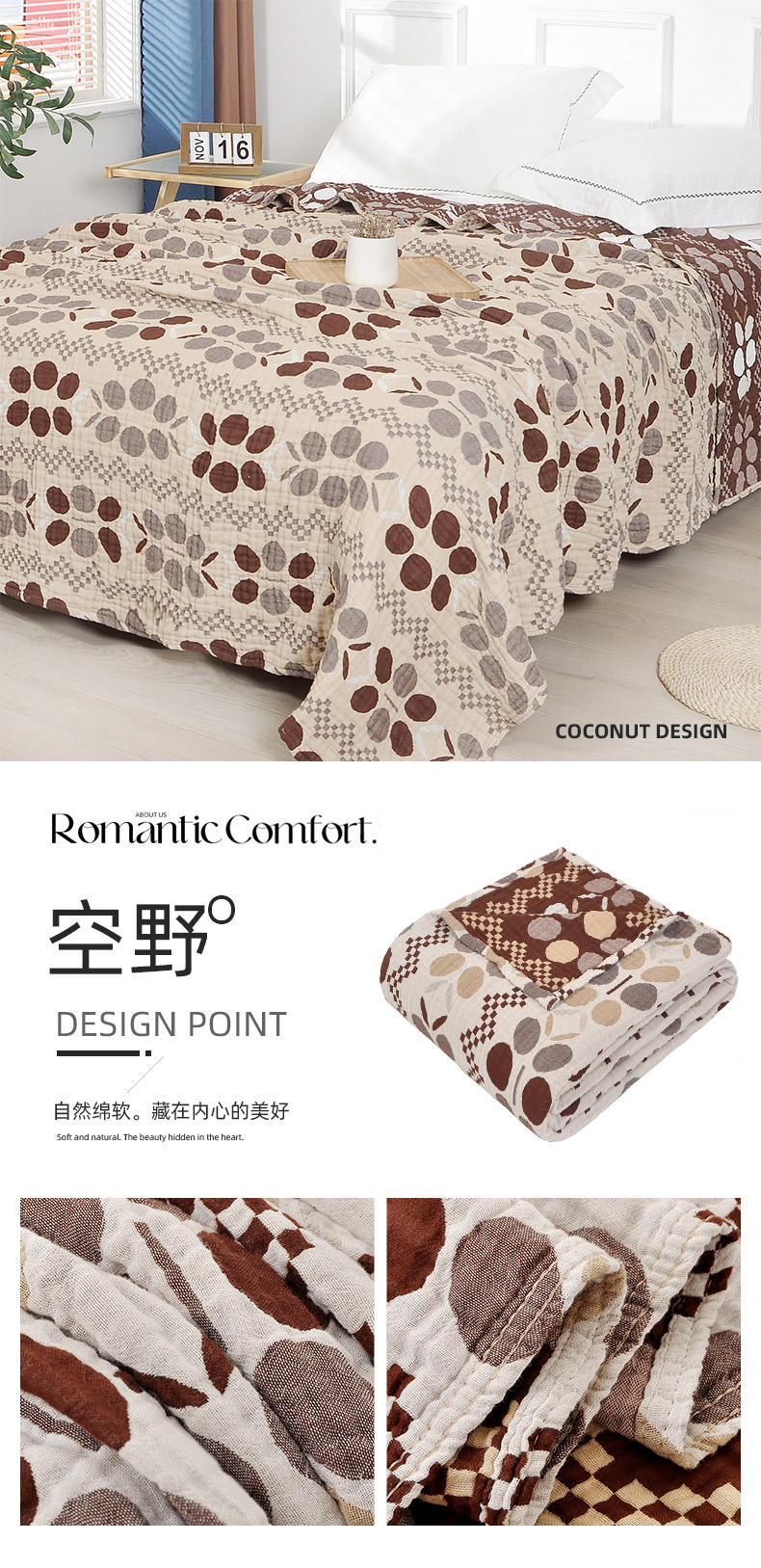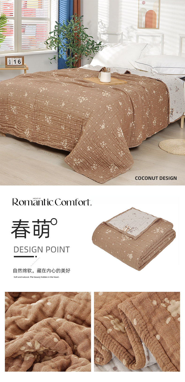 (总)萌飞 2025新款A类三层纱纱布毛巾被床盖,卡曼洛-深棕,卡曼洛-锡器灰,可丽之彩-玫瑰粉,可丽之彩-墨黑,可丽之彩-亚丁绿,慕白-碟翅蓝,慕白-锡器灰,叶美-赤铜棕,叶趣-深棕