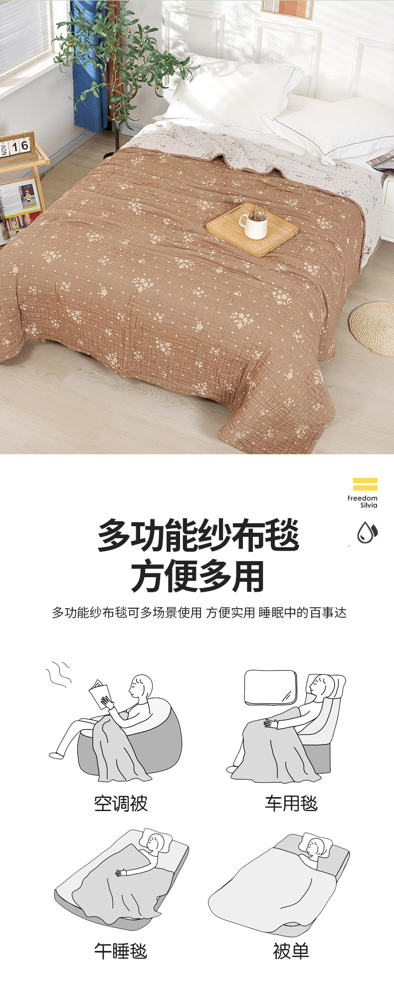 (总)萌飞 2025春夏新款全棉纯棉超柔四层泡纱布毛巾被