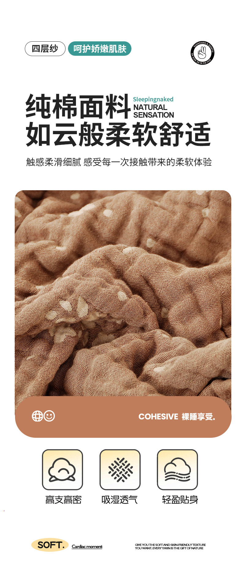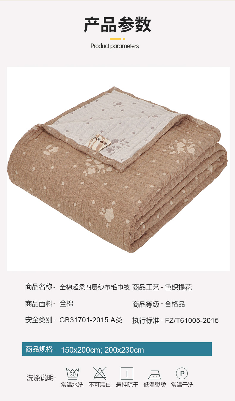 商品名称:(总)萌飞 2025春夏新款全棉纯棉超柔四层泡纱布毛巾被