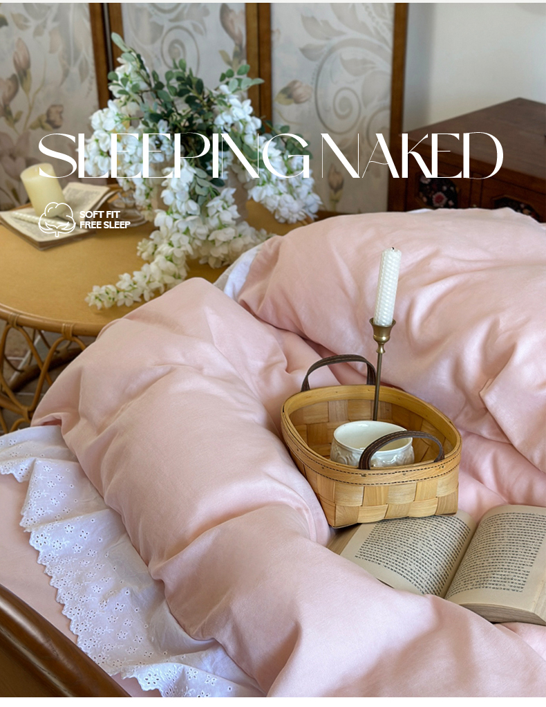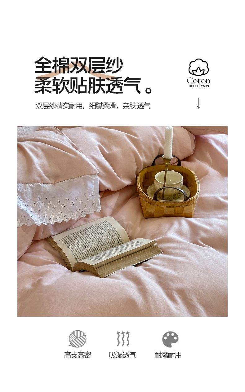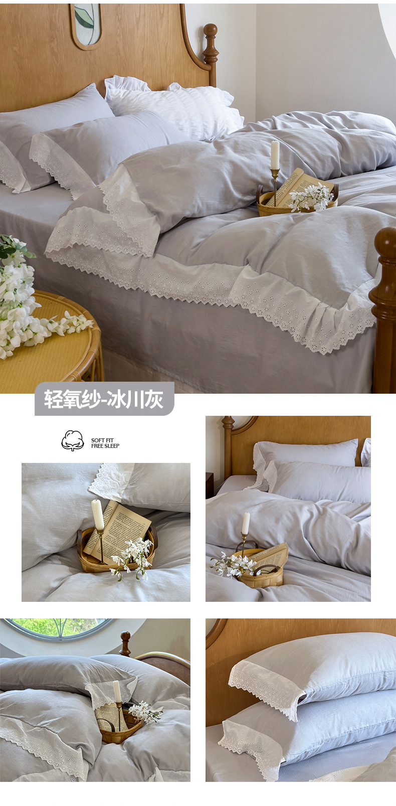 商品名称:窝米 2025新款全棉纯棉轻氧纱蕾丝花边款四件套系列 轻氧纱-白桃粉