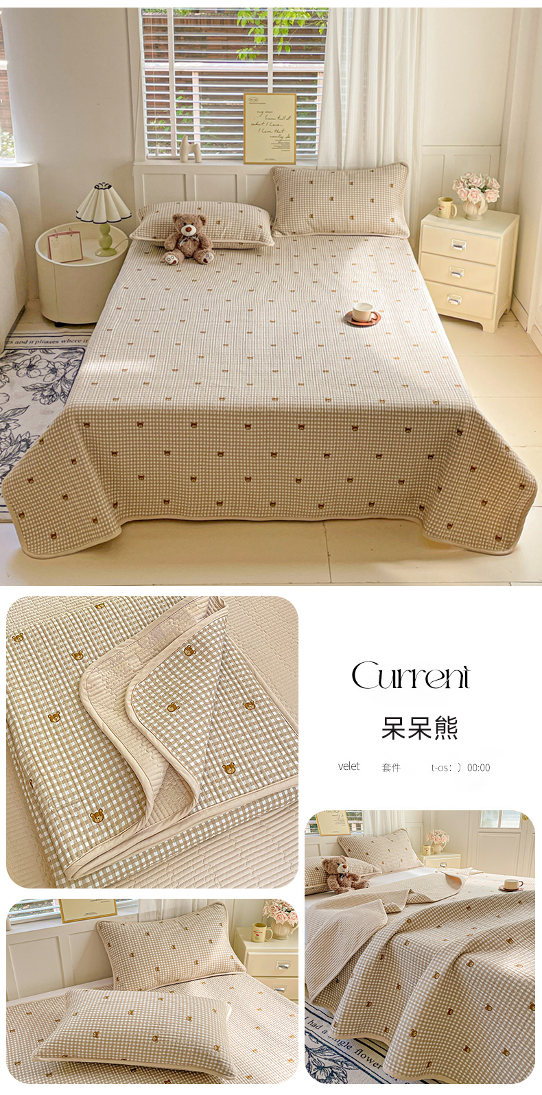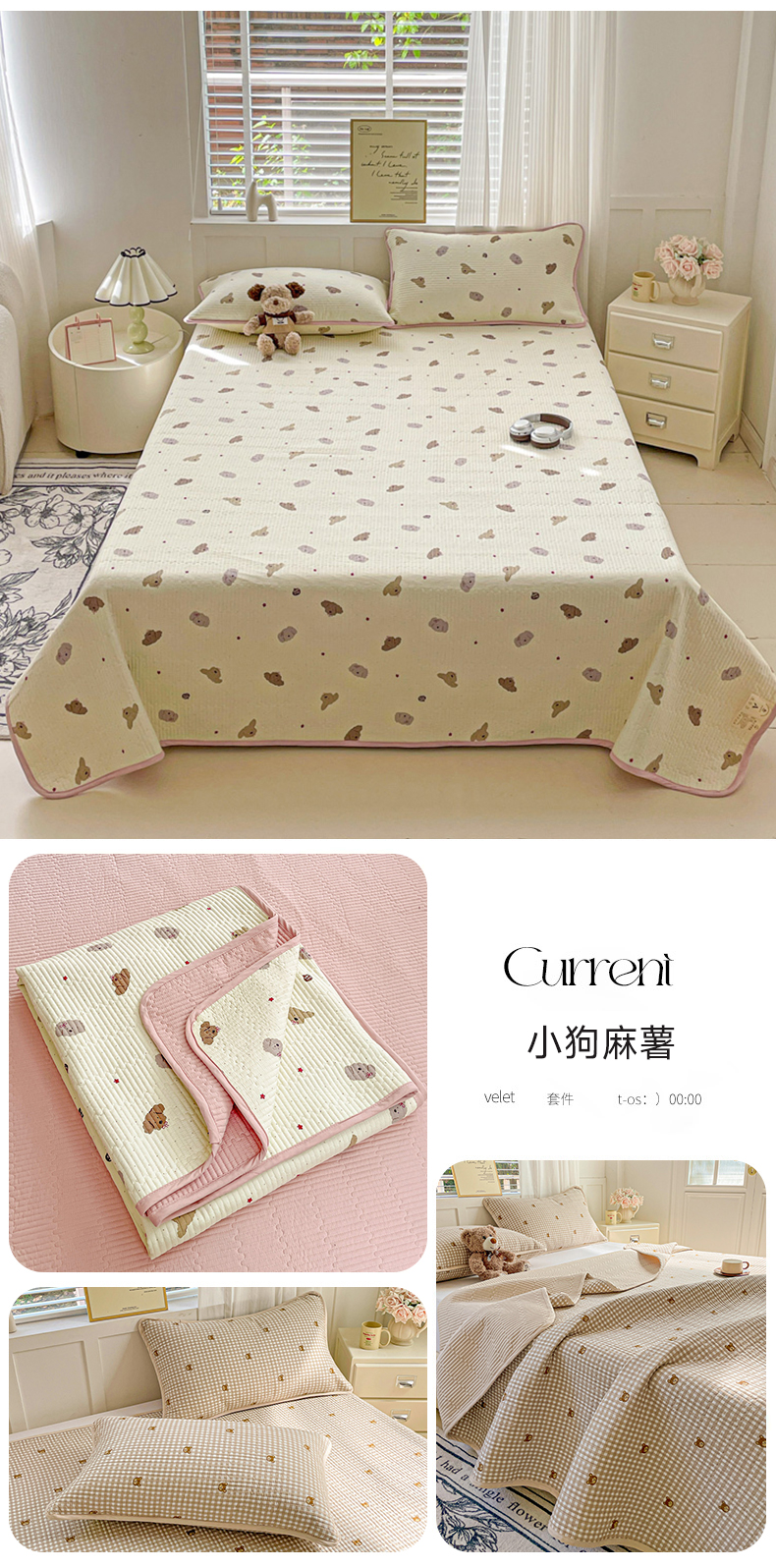 • 91家纺网 家纺一手货源 找家纺 (总)金丝兔 2026春夏新品全棉床盖三件套纯棉砂洗床盖榻榻米炕盖加厚碎花床单,布里斯托,费尔岛,格子爱心,蝴蝶结,吉吉兔,蓝汐,硕果,星星人,樱桃小城,组合图