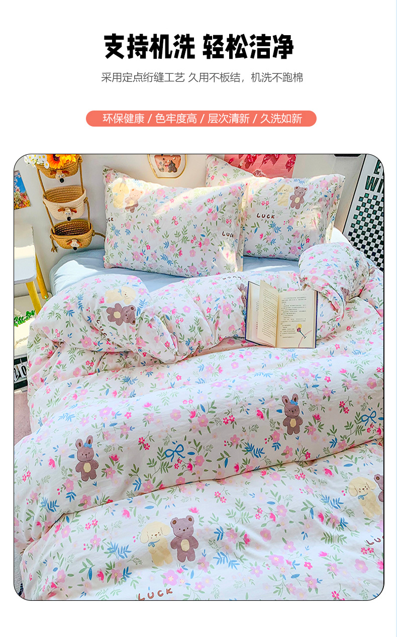 当前位置: 91家纺网 > 商品网购 > 床品套件 > 四件套 > 水洗棉四件套 > 艾特你 2025新款印花水洗棉四件套 好伙伴小熊