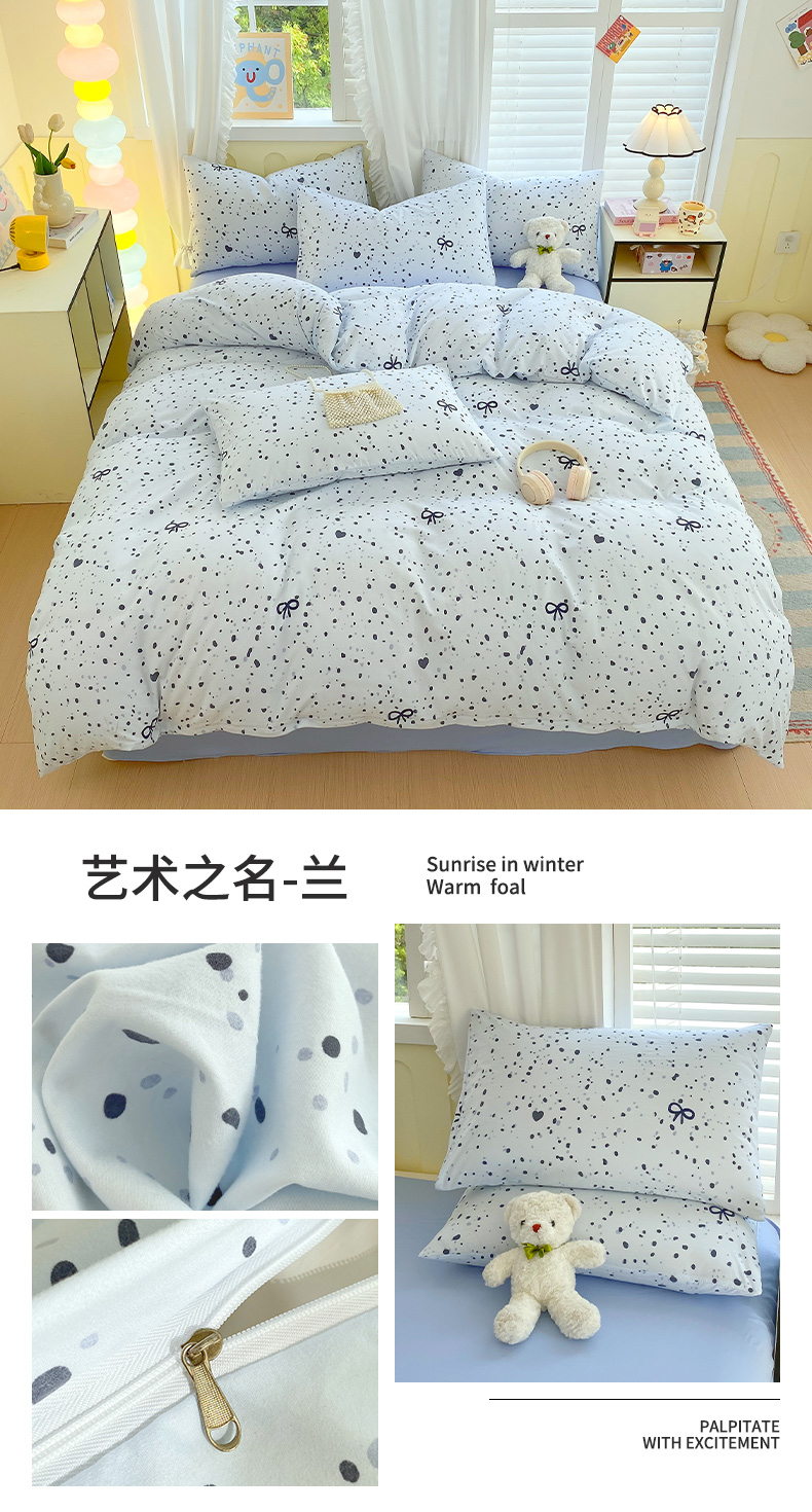 当前位置: 91家纺网 > 商品网购 > 床品套件 > 四件套 > 水洗棉四件套 > 雨彤家纺 2025年新款软糯糯云朵水洗棉印花四件套 艺术之名-兰