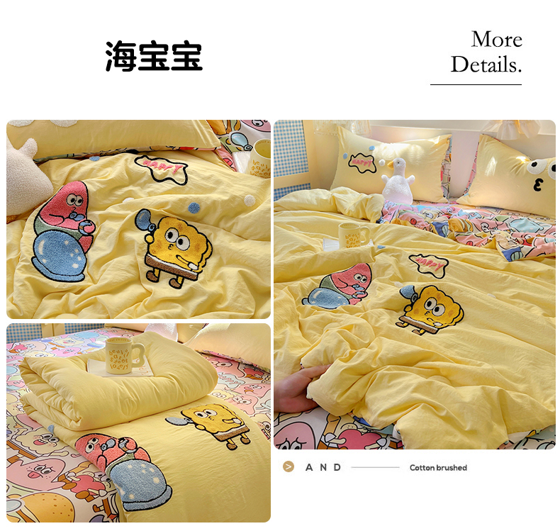 (总)易辰美 2025新款水洗棉毛巾绣卡通四件套,彩条狗,吉他小熊,拉布布,篮球小象,萌趣猫咪,小新与大白