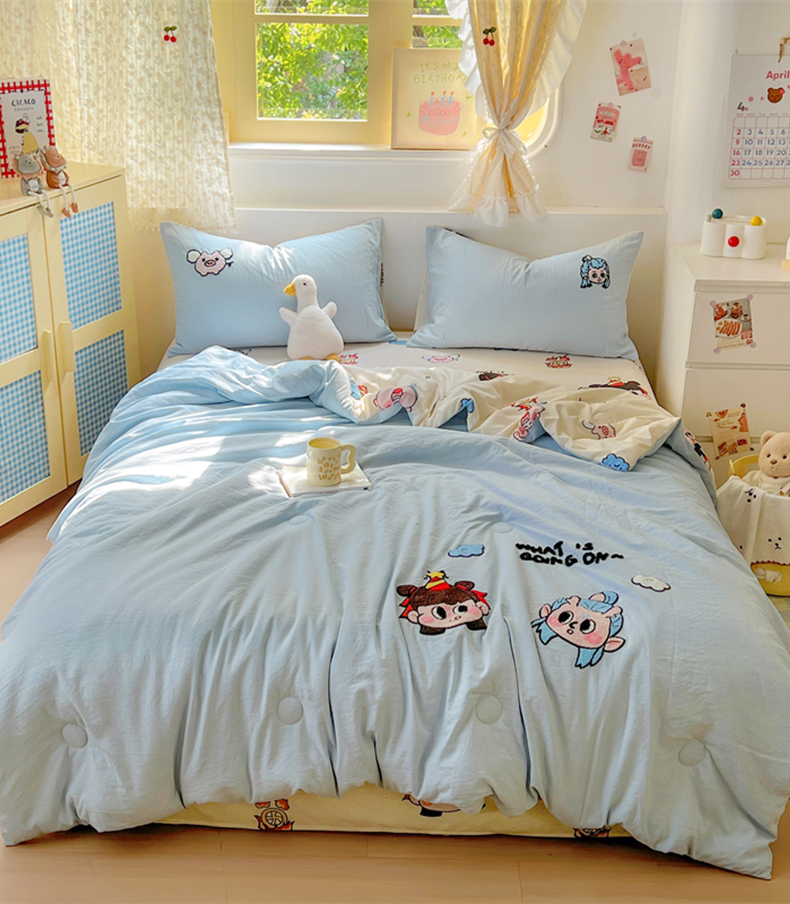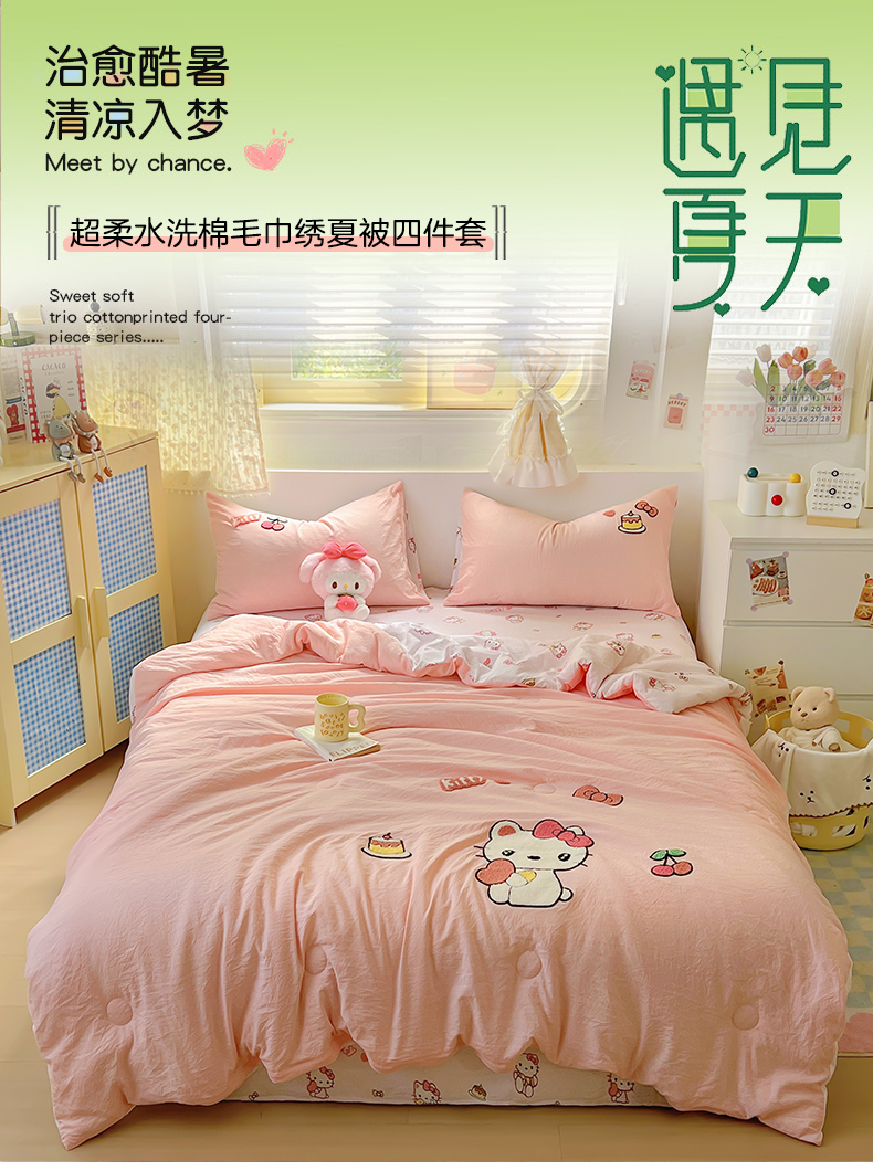 (总)易辰美 2025新款水洗棉毛巾绣夏被空调被夏凉被四件套