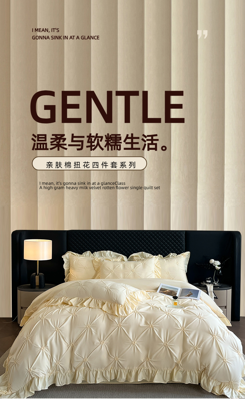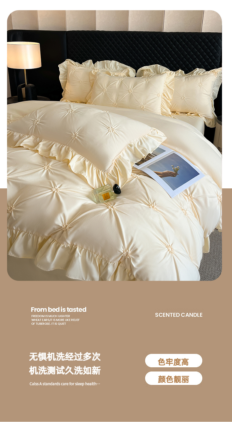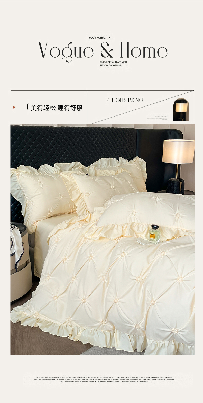 当前位置: 91家纺网 > 商品网购 > 床品套件 > 四件套 > 其它四件套 > 千希家纺 2025新款扭花花边工艺四件套-唯美系列 买家秀加QQ群920079874或445224204或微信私信 唯美-米黄