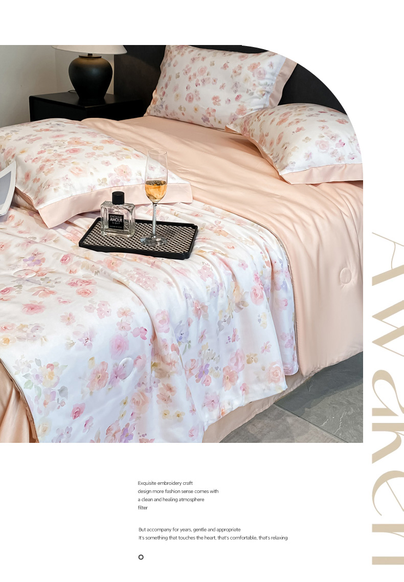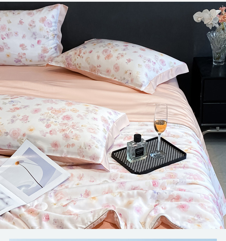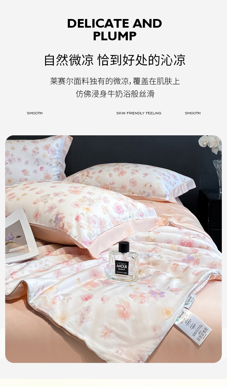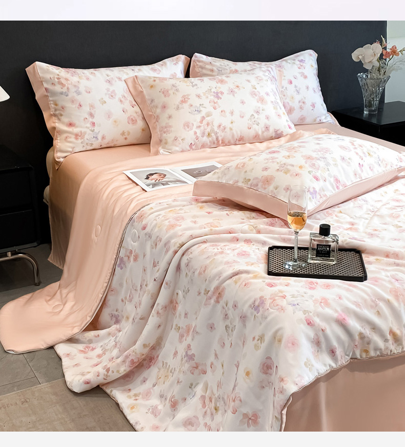 商品名称:慕尚家纺 2025新款莱赛尔天丝夏被夏凉被空调被四件套 水漾粉