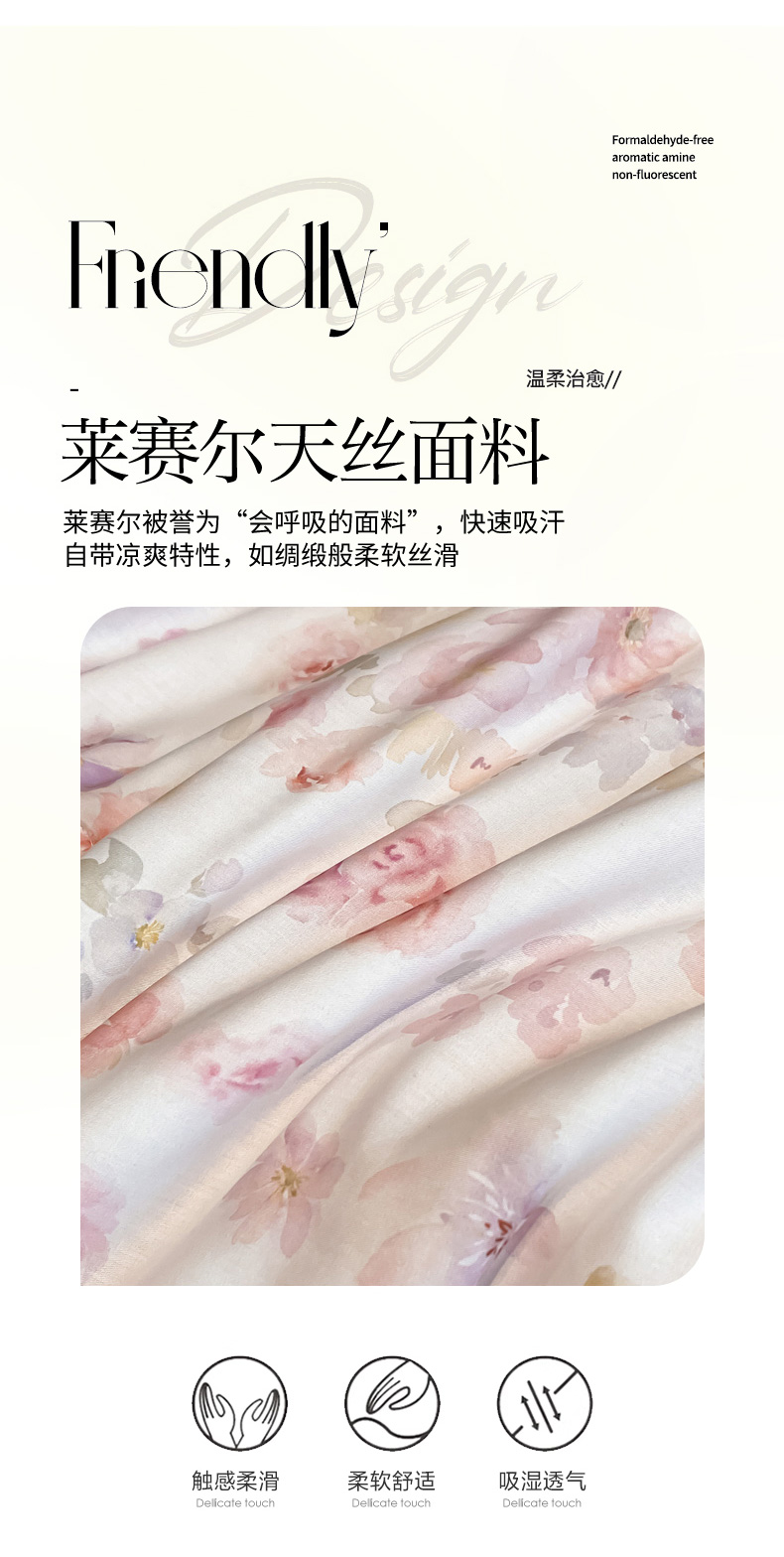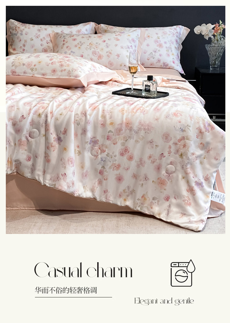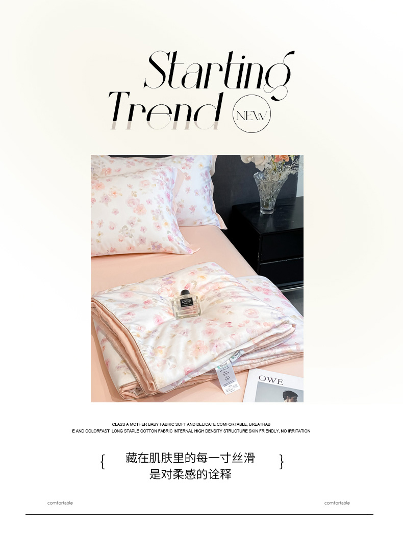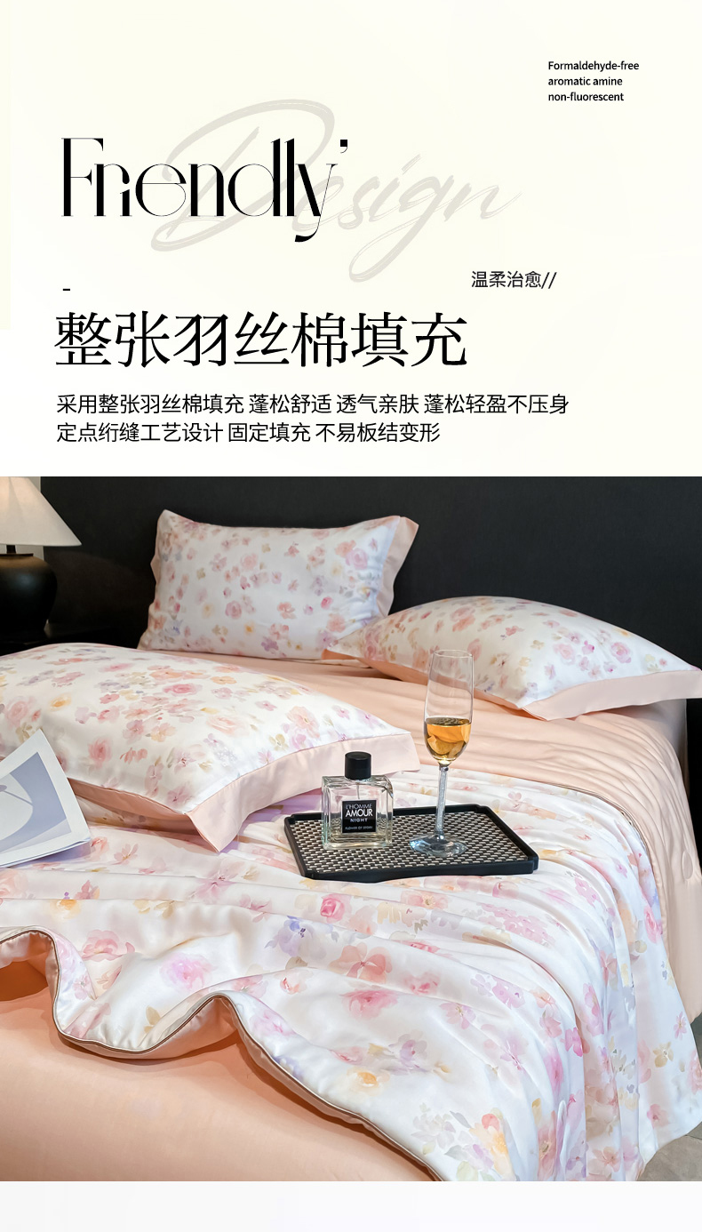 商品名称:慕尚家纺 2025新款莱赛尔天丝夏被夏凉被空调被四件套 水漾粉
