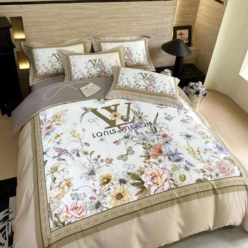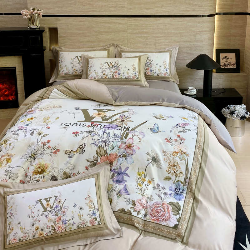 大麦乐田 2025新款轻奢高端数码印花四件套系列 维密 浅棕