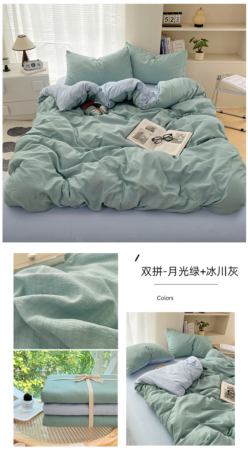 当前位置: 91家纺网 > 商品网购 > 床品套件 > 四件套 > 双层纱四件套 > 彩韵家纺 2025新款超柔云感m双层纱四件套 双拼-月光绿+冰川灰