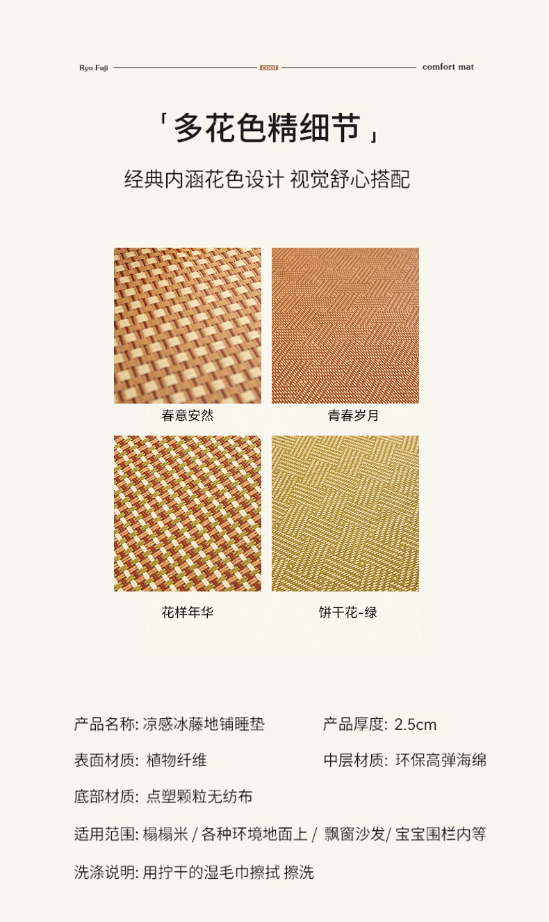 • 91家纺网 家纺一手货源 找家纺 北辰 2025新款凉席多功能地垫床垫床边垫打地铺神器 藤编地垫-罗马格调