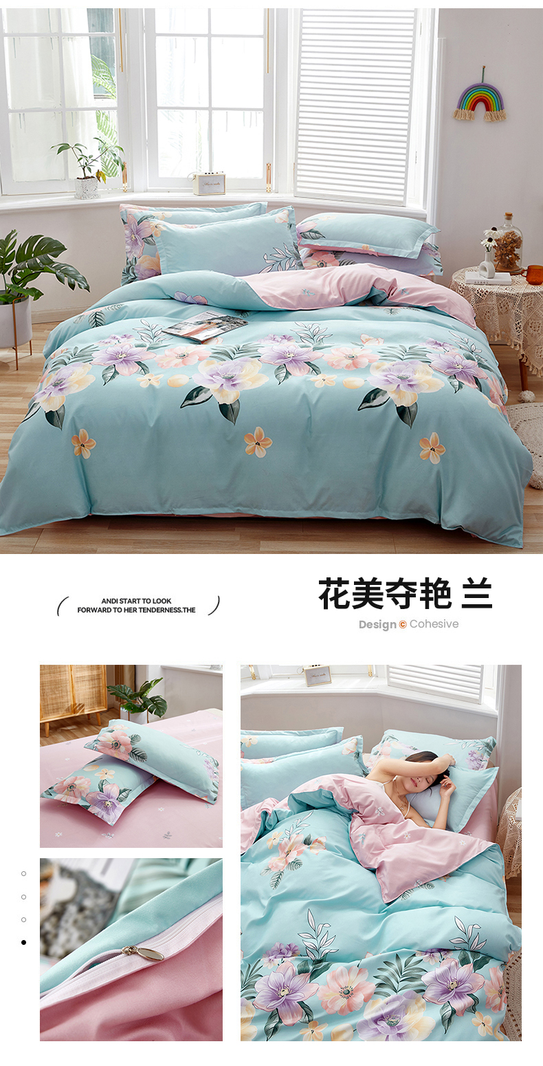 当前位置: 91家纺网 > 商品网购 > 床品套件 > 四件套 > 化纤普通四件套 > 简冠家纺 2025直播爆款北欧风亲肤植物羊绒磨毛四件套 花美夺艳-兰