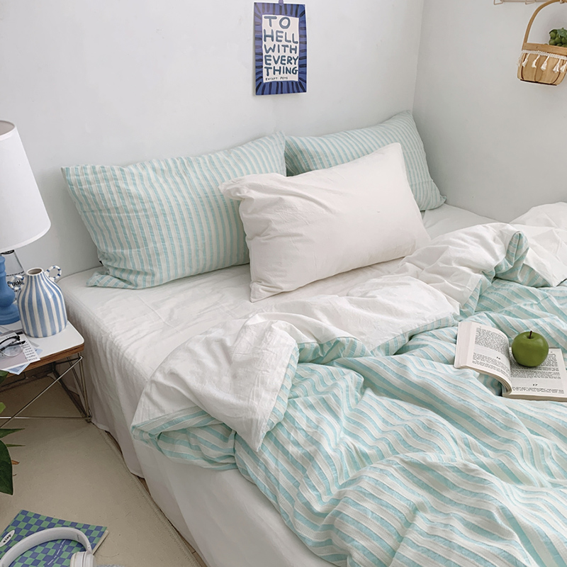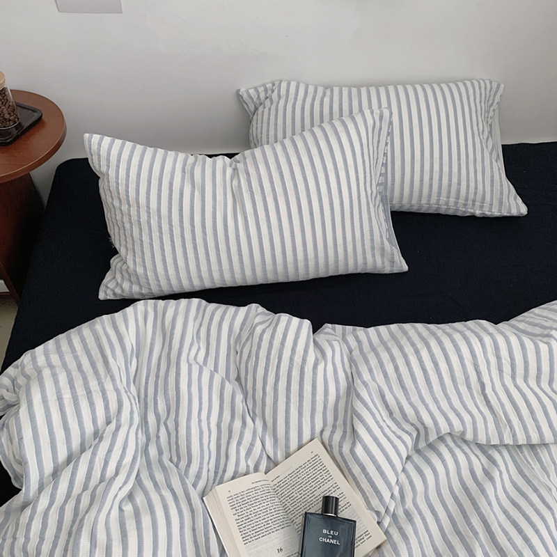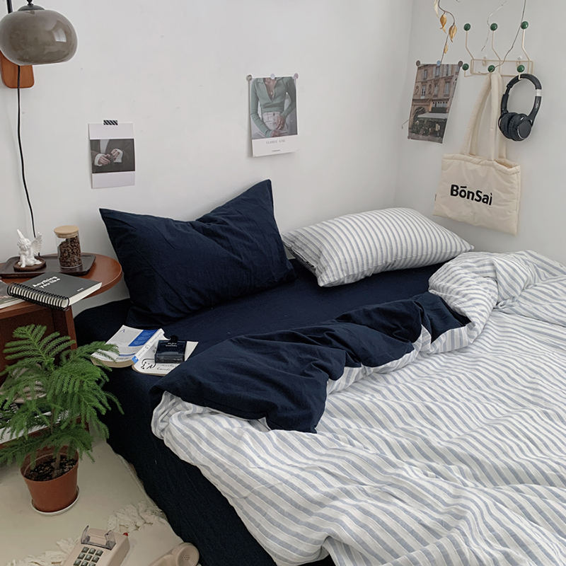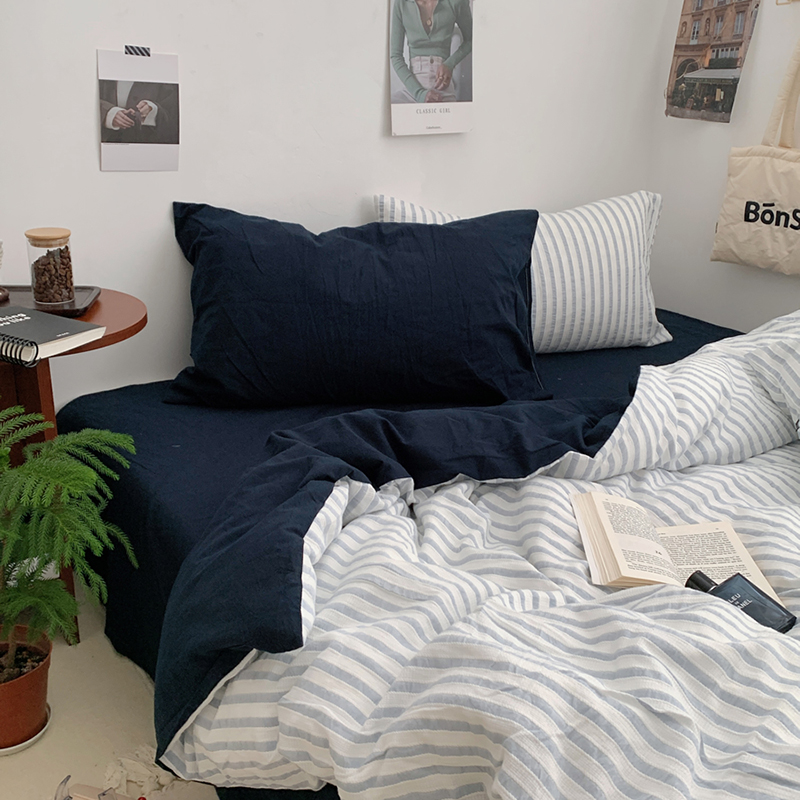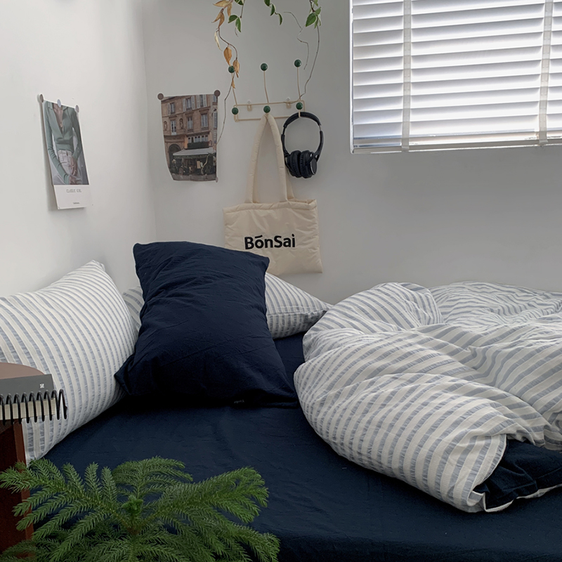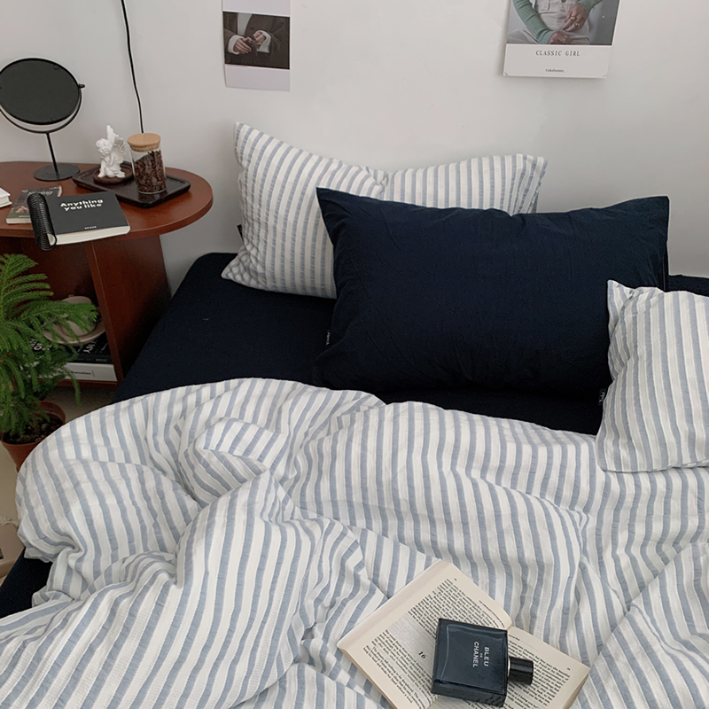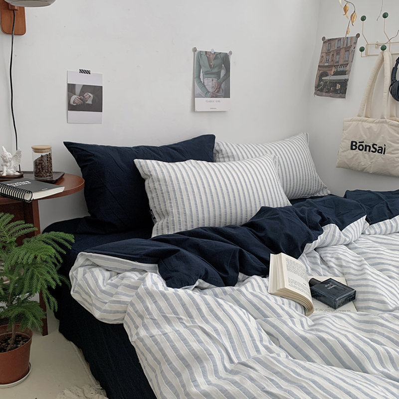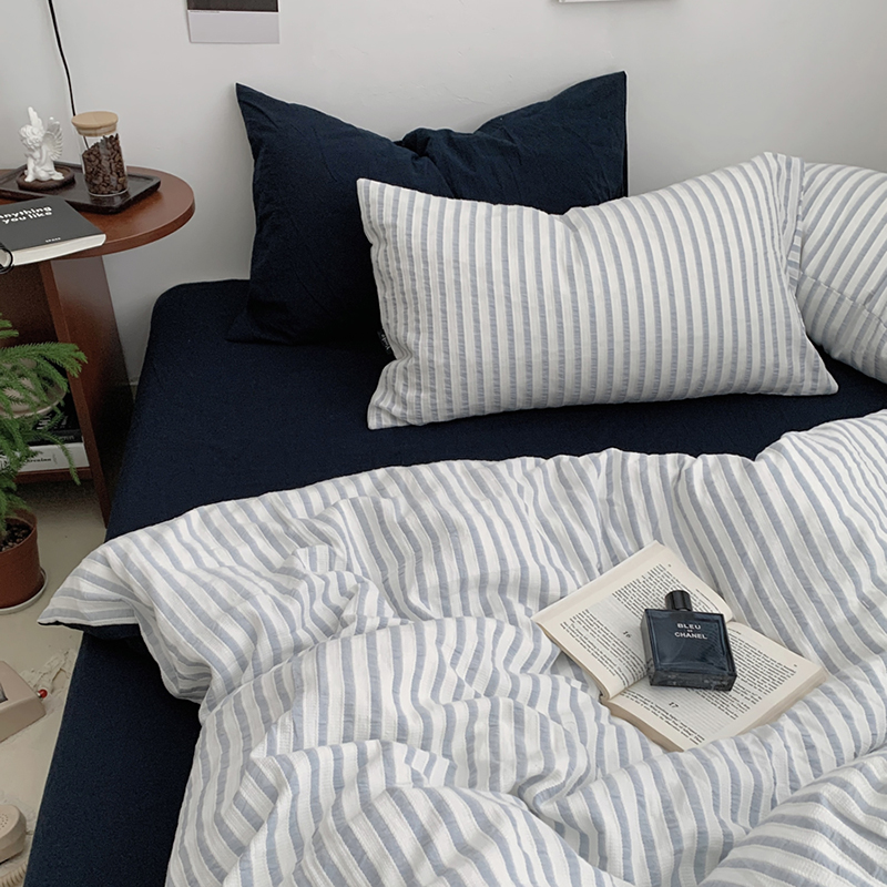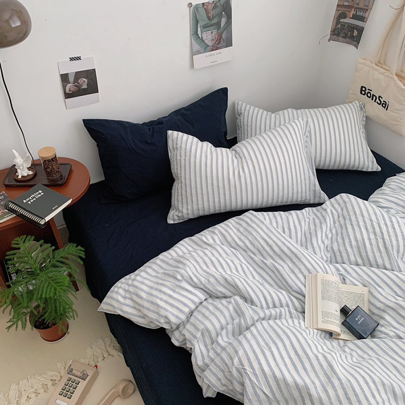 当前位置: 91家纺网 > 商品网购 > 床品套件 > 四件套 > 全棉普通四件套 > 柚可家居 2024新款雾蓝条纹提花水洗棉四件套(送手提袋) 藏蓝