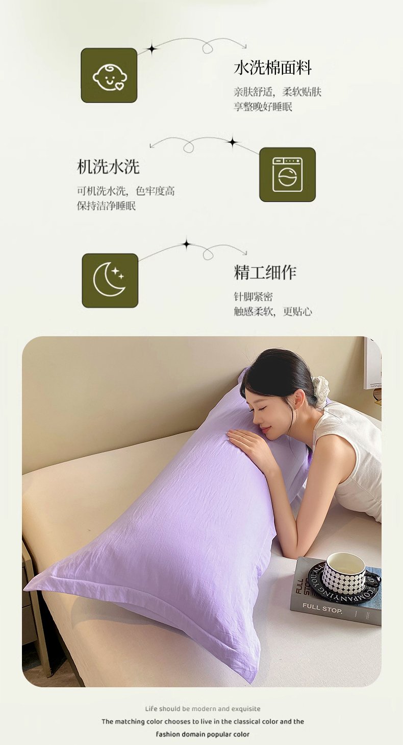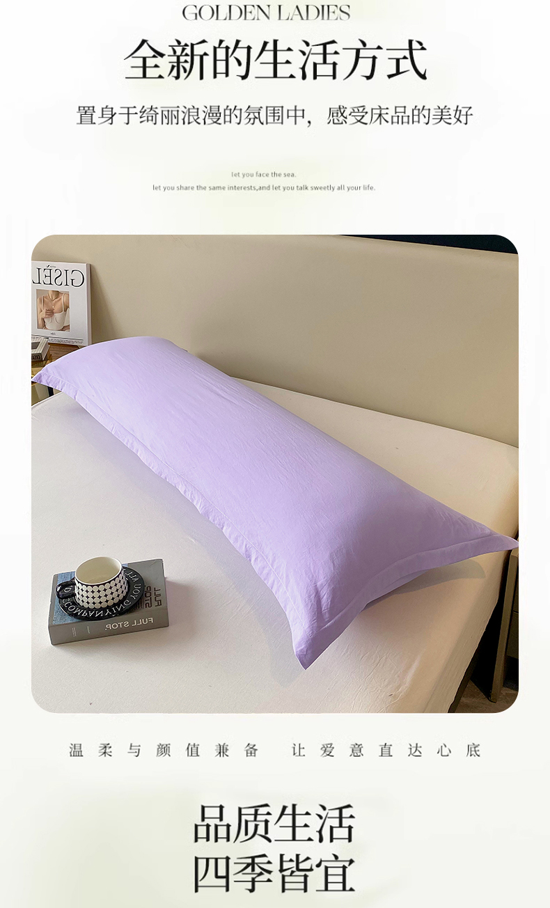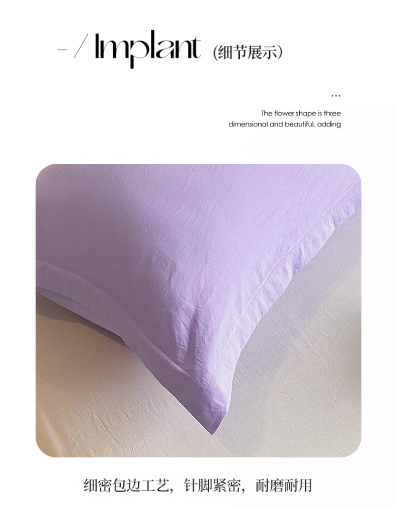 商品名称:雨彤家纺 2025年新款A类纯色水洗棉枕套 浅紫