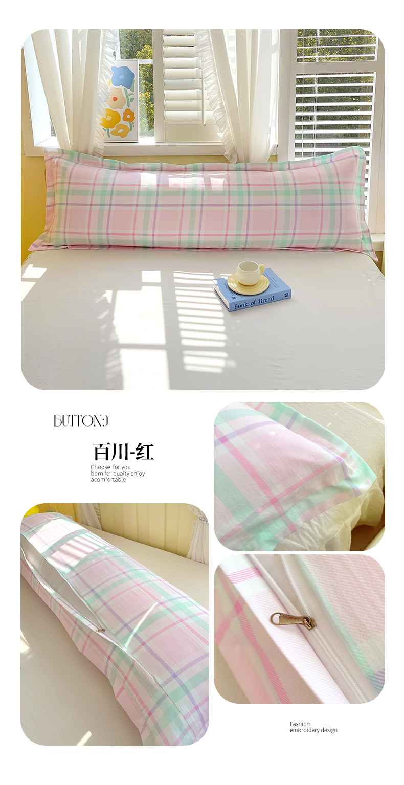 商品名称:雨彤家纺 2025年新款A类条纹水洗棉枕套 百川-红