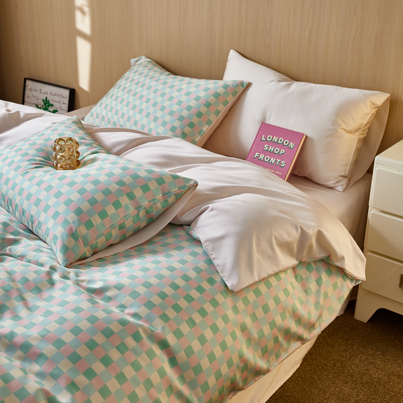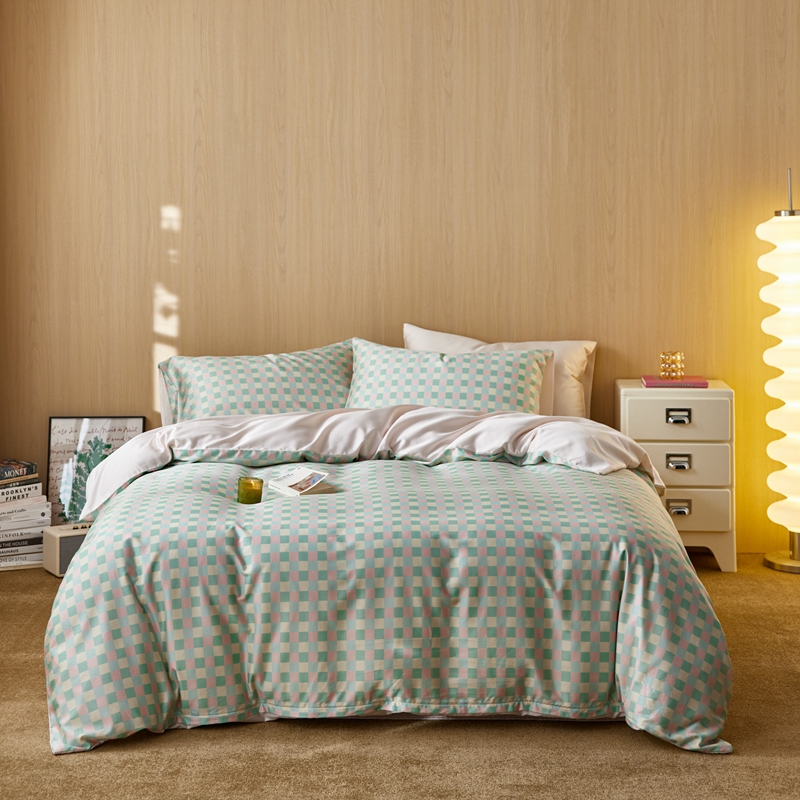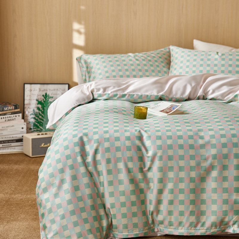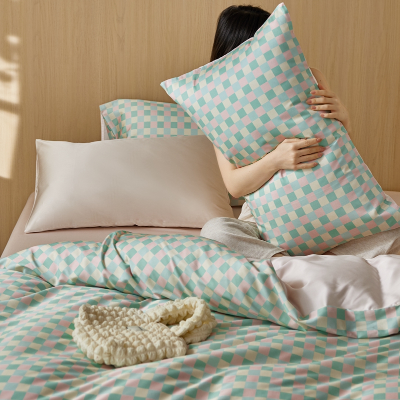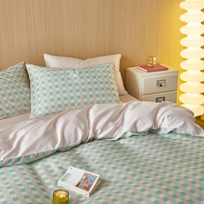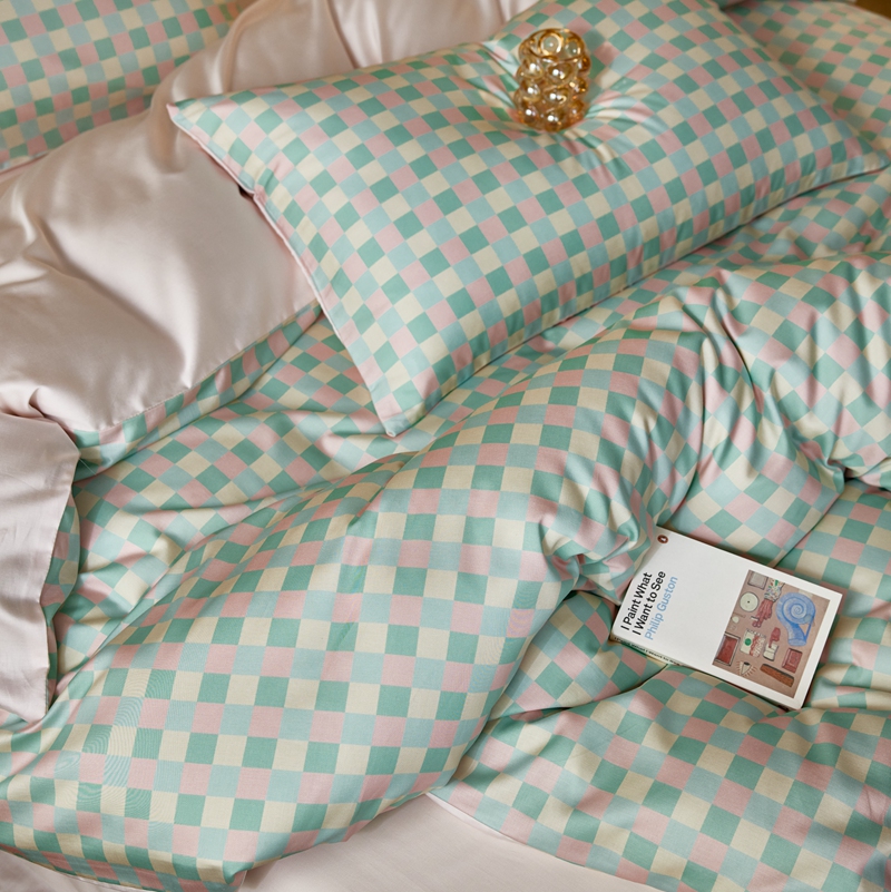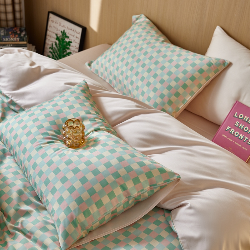 安莱生活2025春夏新款天丝棉四件套 奶油格