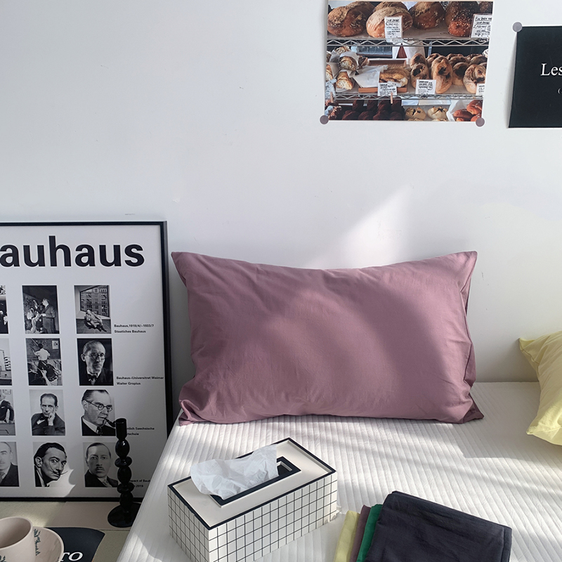 柚可家居 2024新款纯色水洗棉40支全棉色织单枕套-系列二 玫瑰粉紫