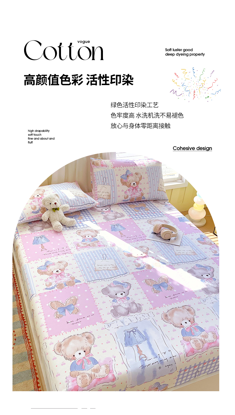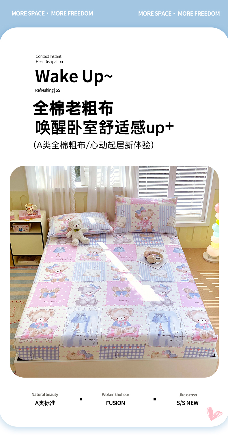 金鑫汇家纺 2025新款A类全棉老粗布床单床笠 老粗布·熊熊精灵