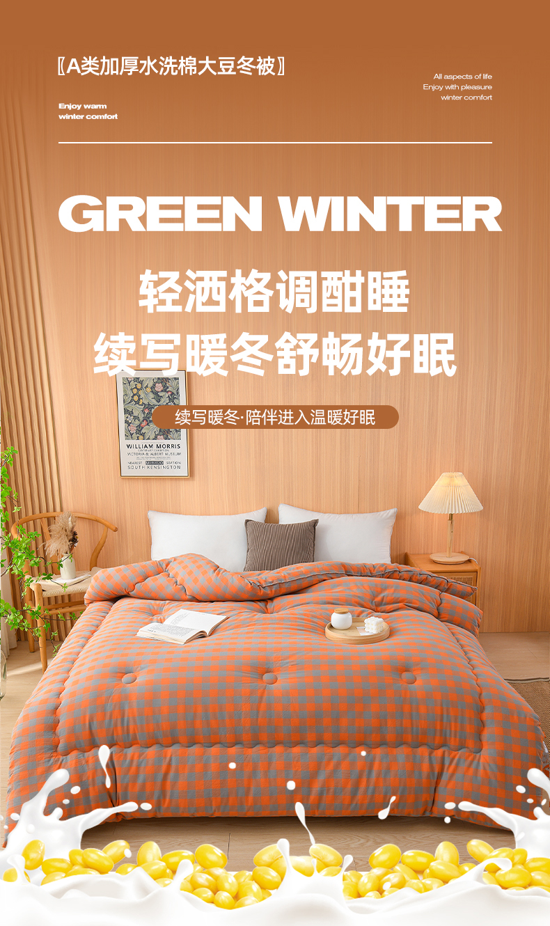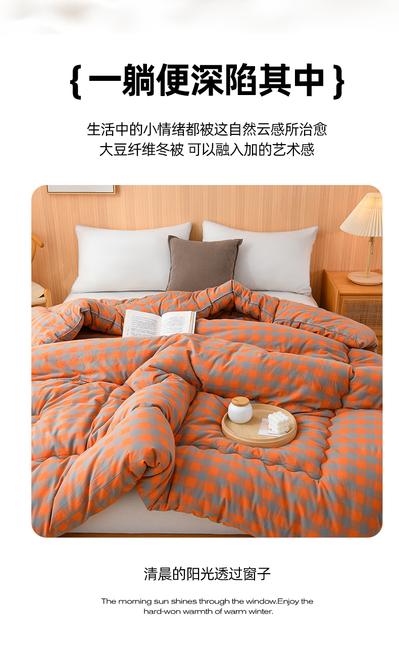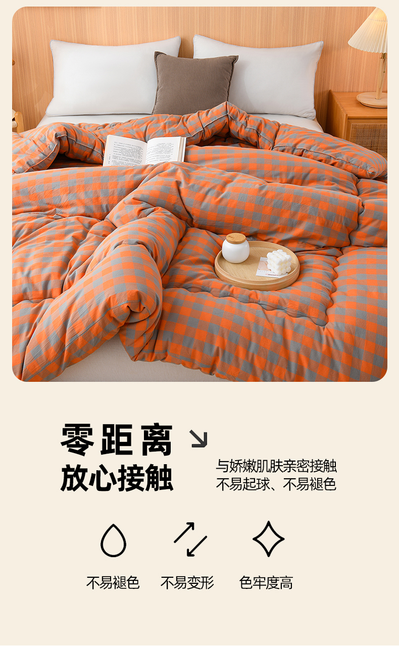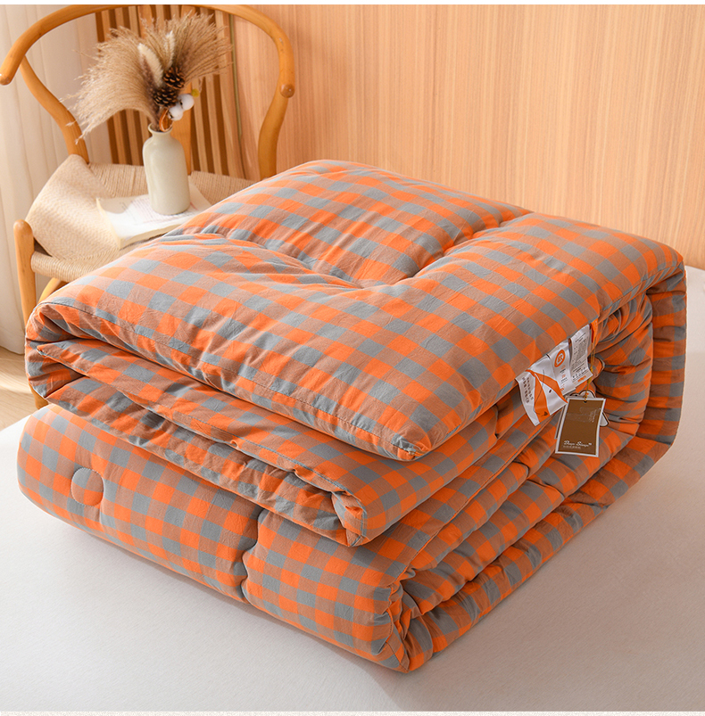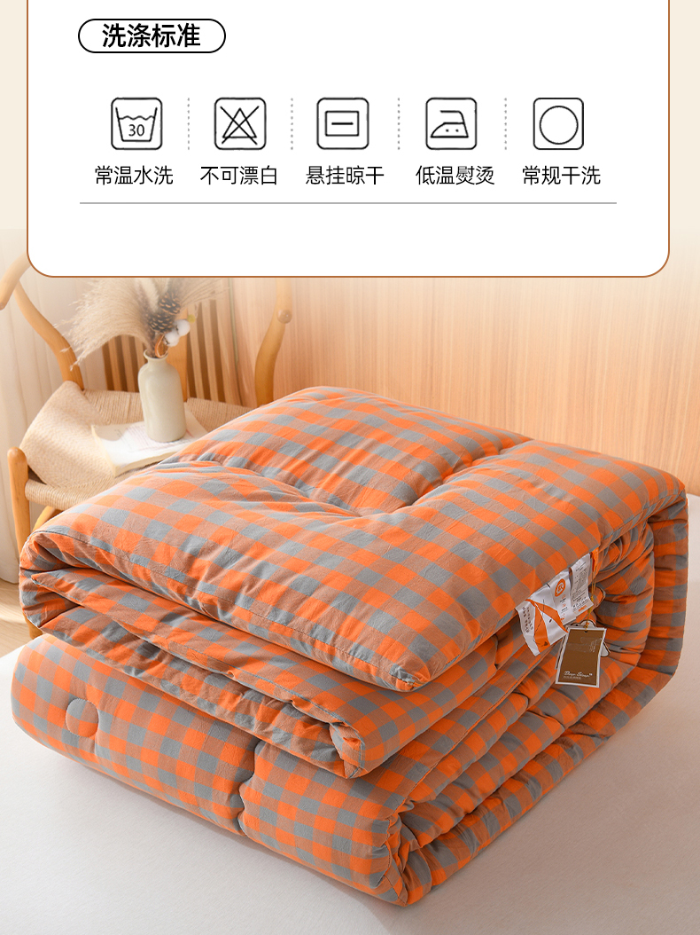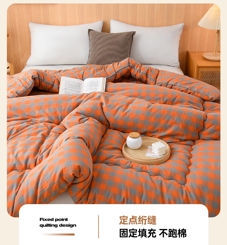 (总)易展2025新款无印水洗棉格子大豆冬被,格粉蓝,格浅绿,浅格橙,浅轻粉,轻夏绿,深橙格,湛靓蓝,缀纹黄