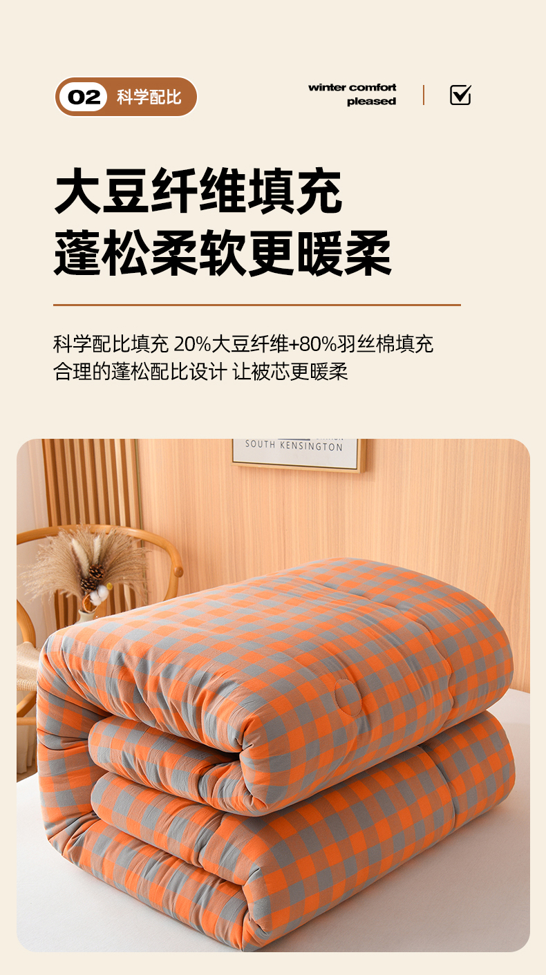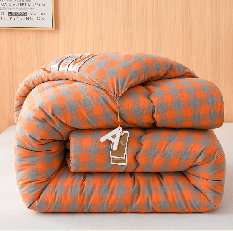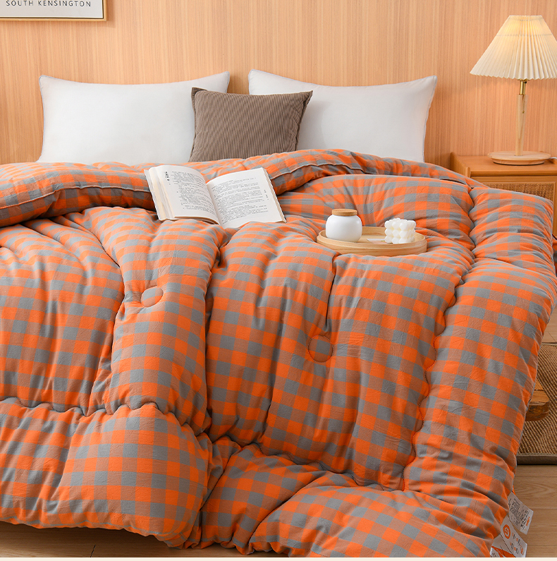• 91家纺网 家纺一手货源 找家纺 易展2025新款无印水洗棉格子大豆冬被 浅格橙