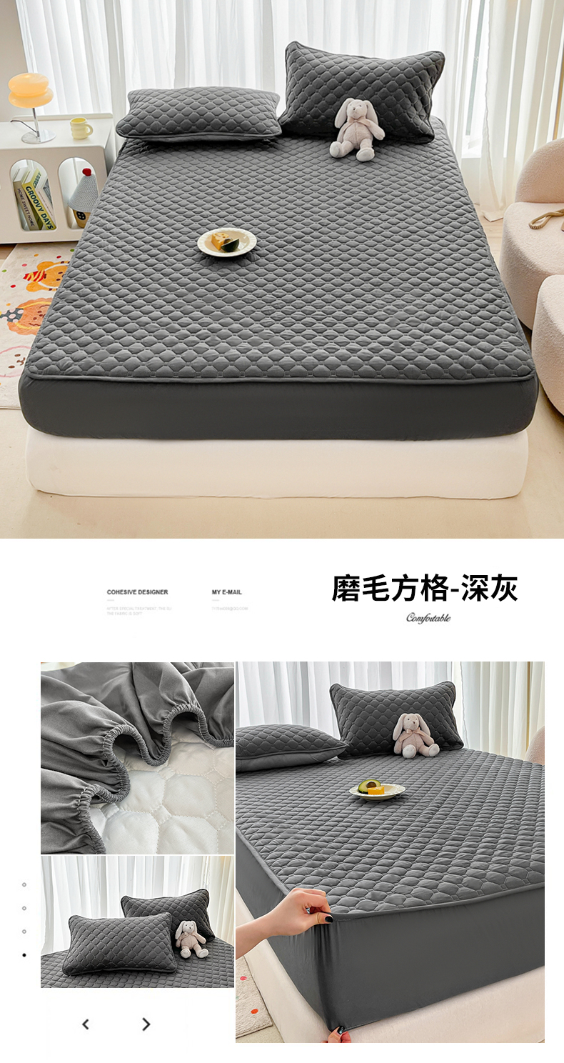 • 91家纺网 家纺一手货源 找家纺 欧邦 2025新款四季款纯色水洗棉夹棉床笠床垫保护罩 磨毛方格-深灰