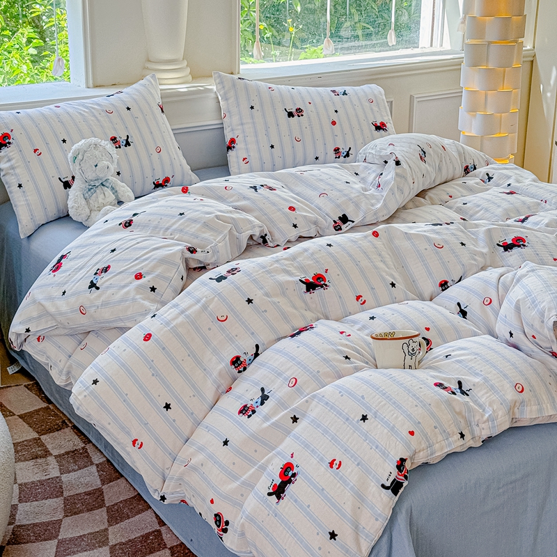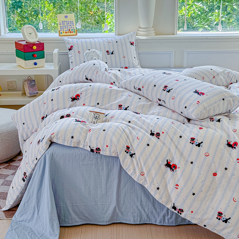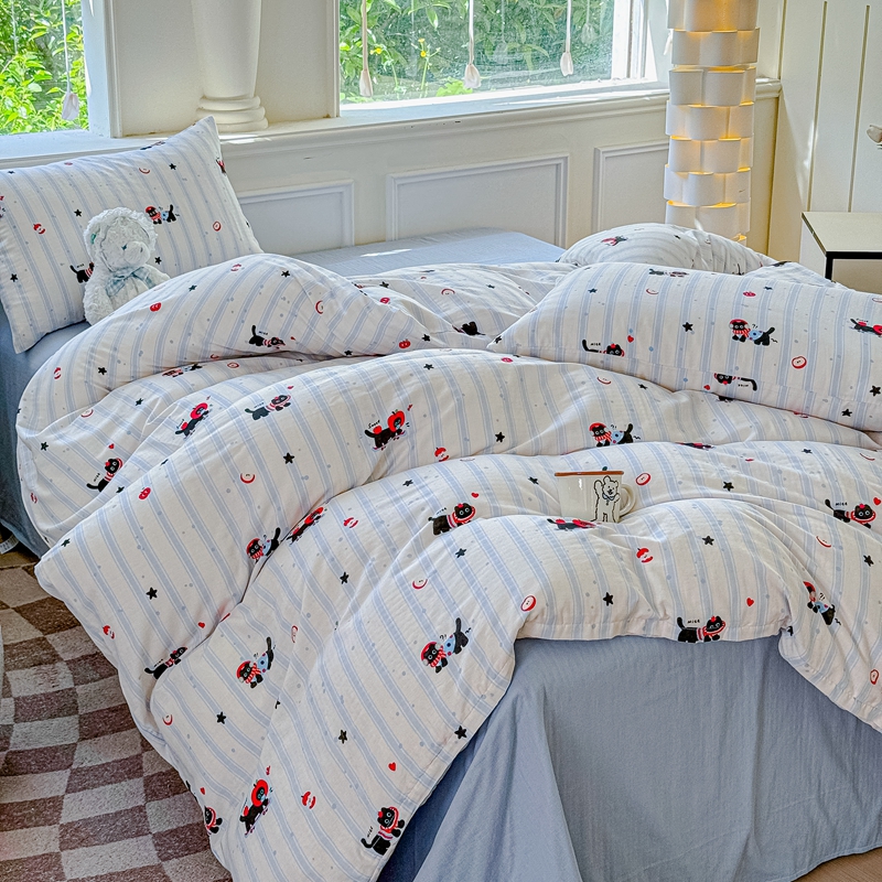 当前位置: 91家纺网 > 商品网购 > 床品套件 > 四件套 > 双层纱四件套 > 感遇家纺2025新款全棉双层纱纤柔四件套 滑板小狗