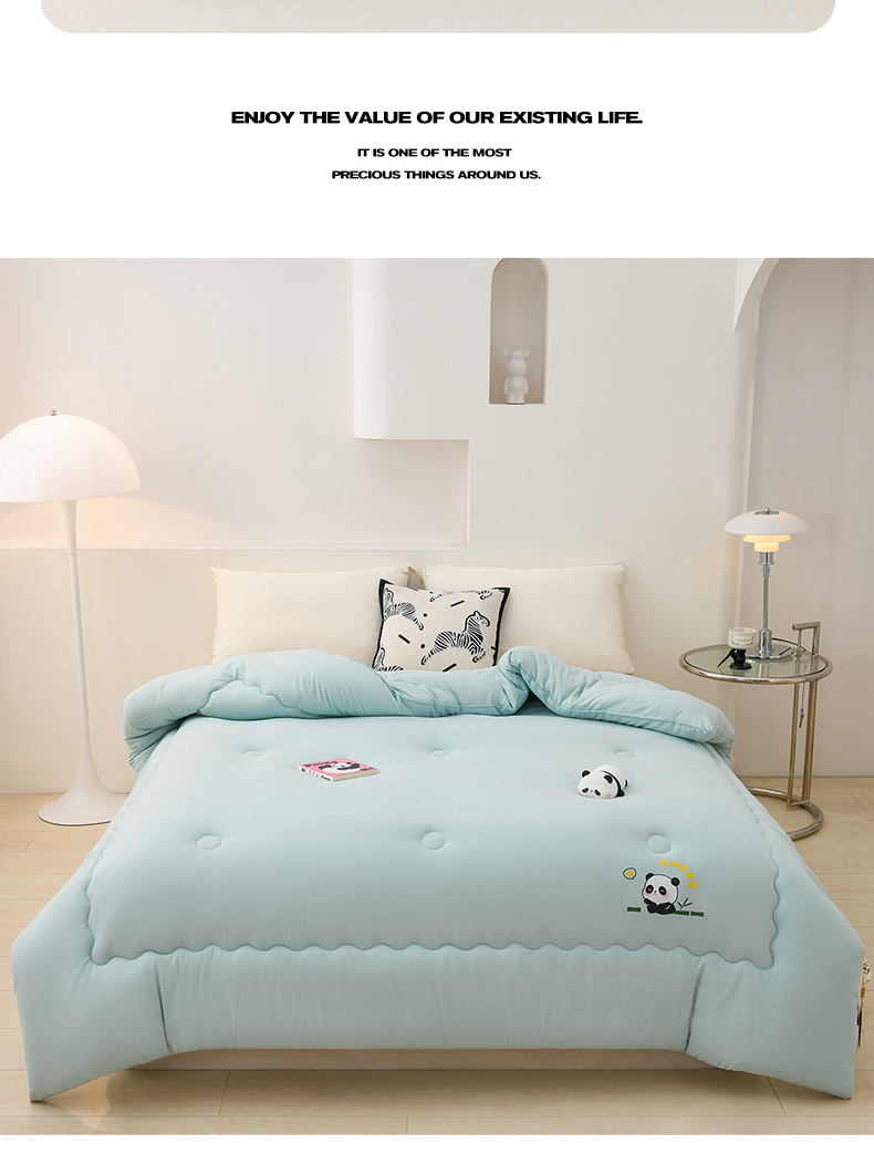 • 91家纺网 家纺一手货源 找家纺 易展家居 2025新款水洗棉大豆被 熊猫-和风蓝